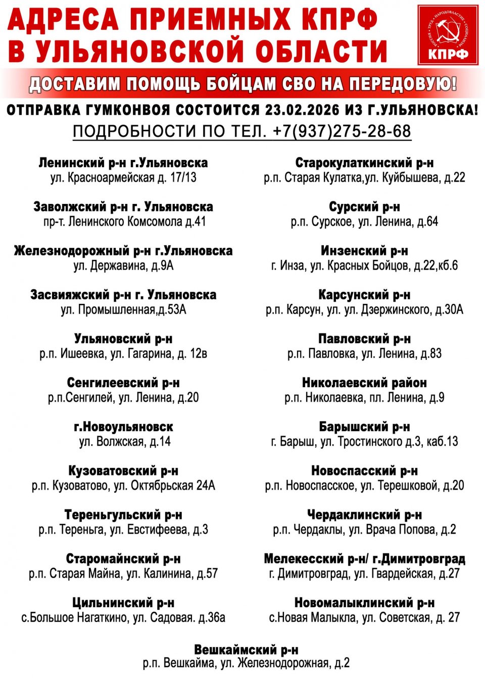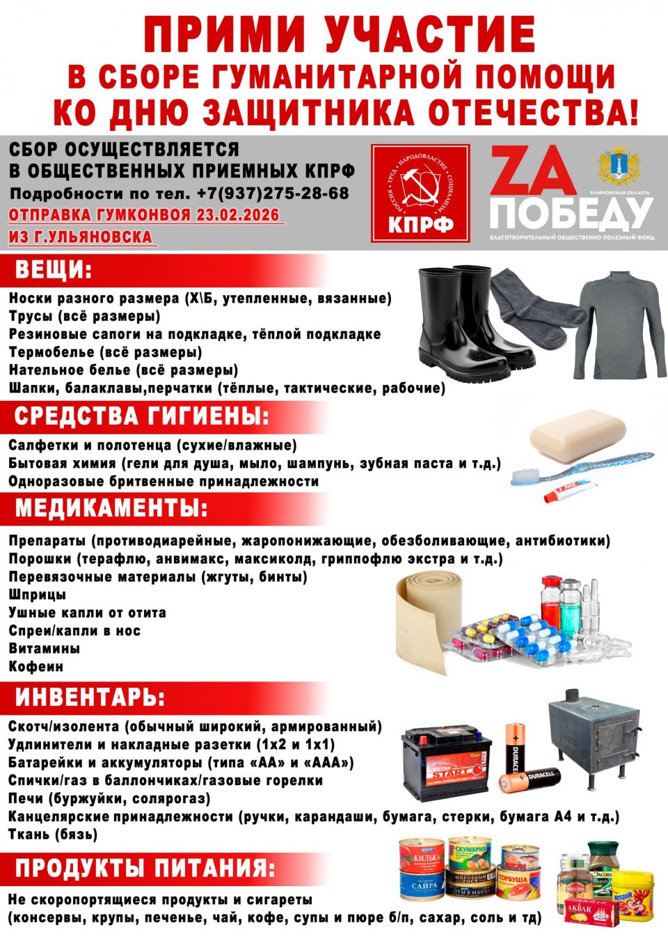 Инициаторами акции выступили Ульяновский областной комитет КПРФ и благотворительный фонд «Za Победу!». Посылки будут сформированы за счет помощи жителей региона и доставлены адресно — на передовую.