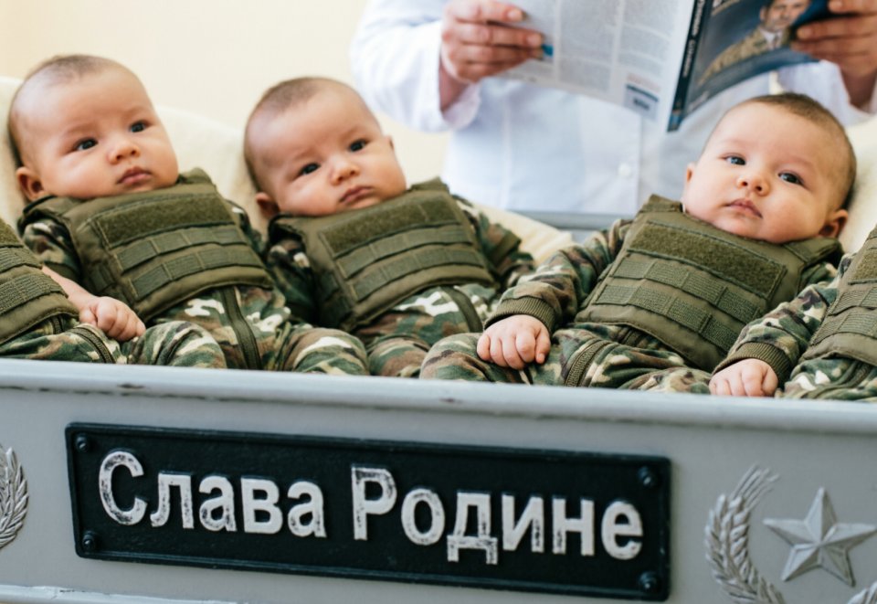 Фотосессия привлекла внимание и общественности: снимки камуфляжных младенцев быстро разлетелись по соцсетям, вызвав множество комментариев.