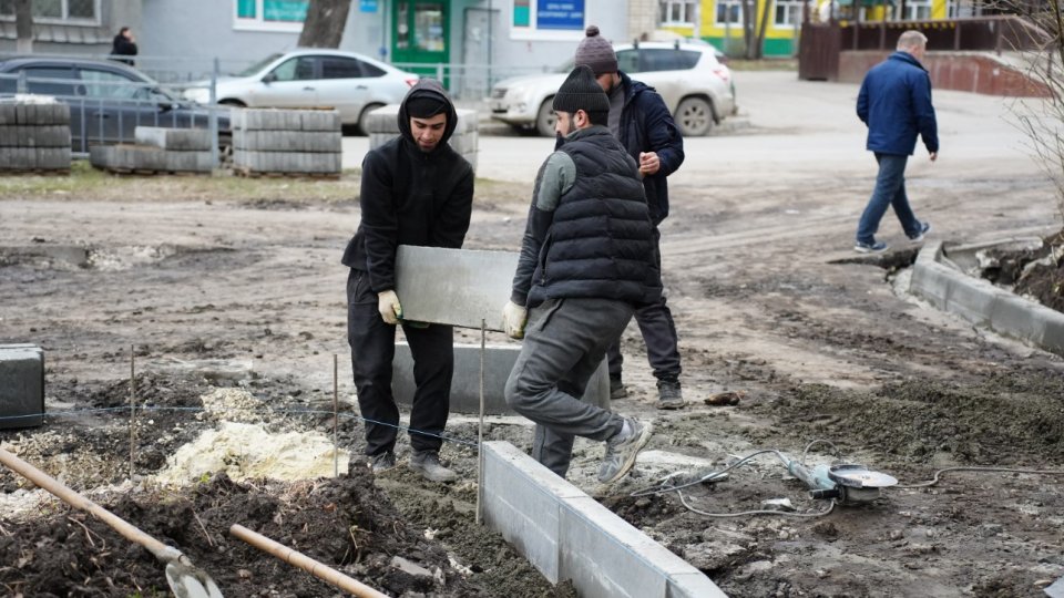 На Пушкинской, 4 (Железнодорожный район) старт дали 1 апреля. Прораб Валерий Гаврилов рассказывает: сейчас монтируют новый борткамень вместо демонтированного, чинят подходы к подъездам, внутридомовой проезд и площадку для белья. Везде укладывают свежий асфальтобетон.