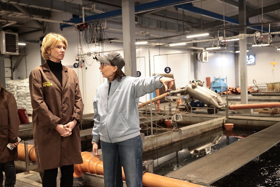 Затем министр посетила фермерское хозяйство Оксаны Дудко, которое выращивает лососевых и занимается их переработкой. Там также работает рыболовный клуб. Есть модульные дома, зоны отдыха и другая туристическая инфраструктура. Ежегодно здесь бывает до 25 тысяч гостей.