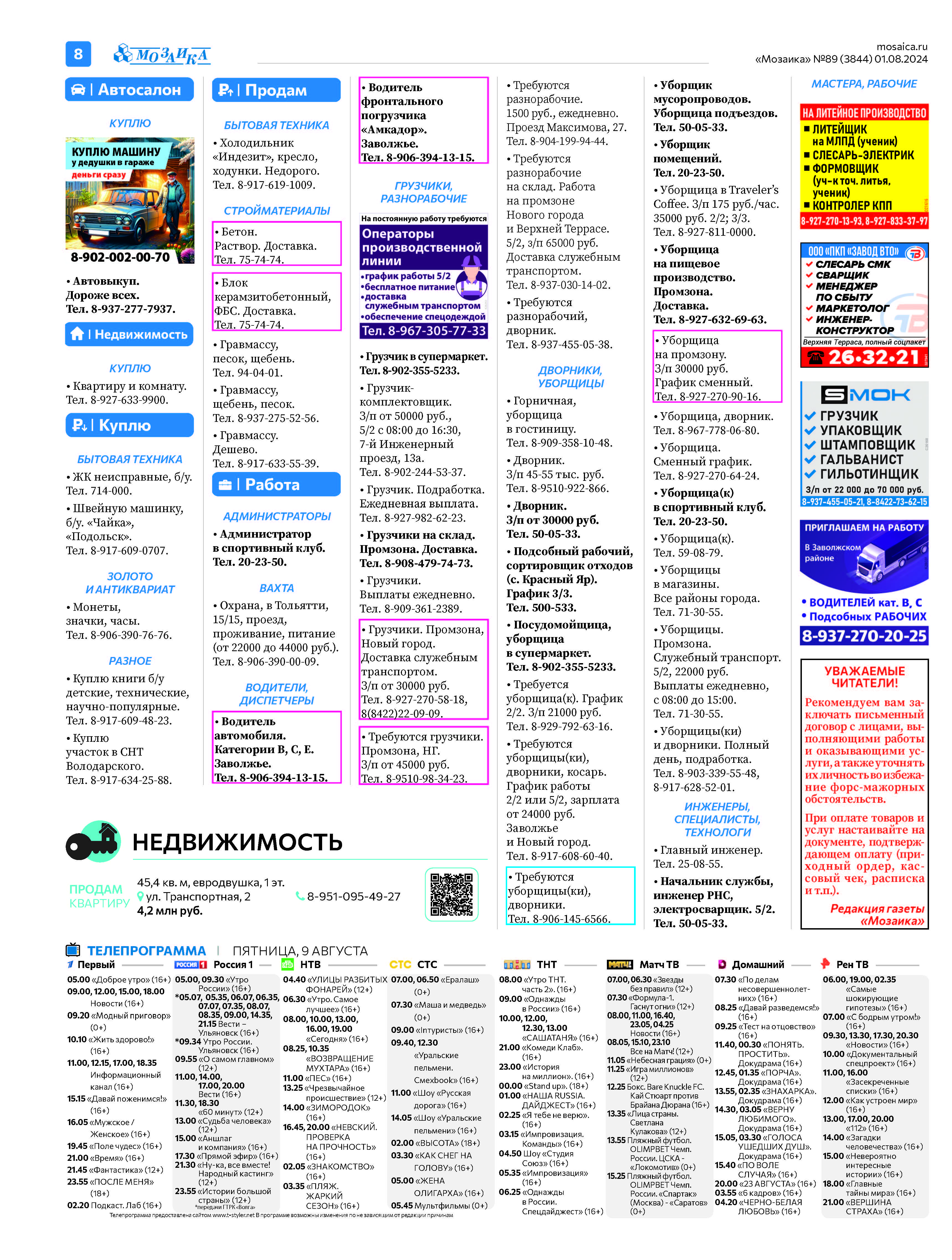 "Мозаика" №89 (3844) от 1 августа 2024 г.