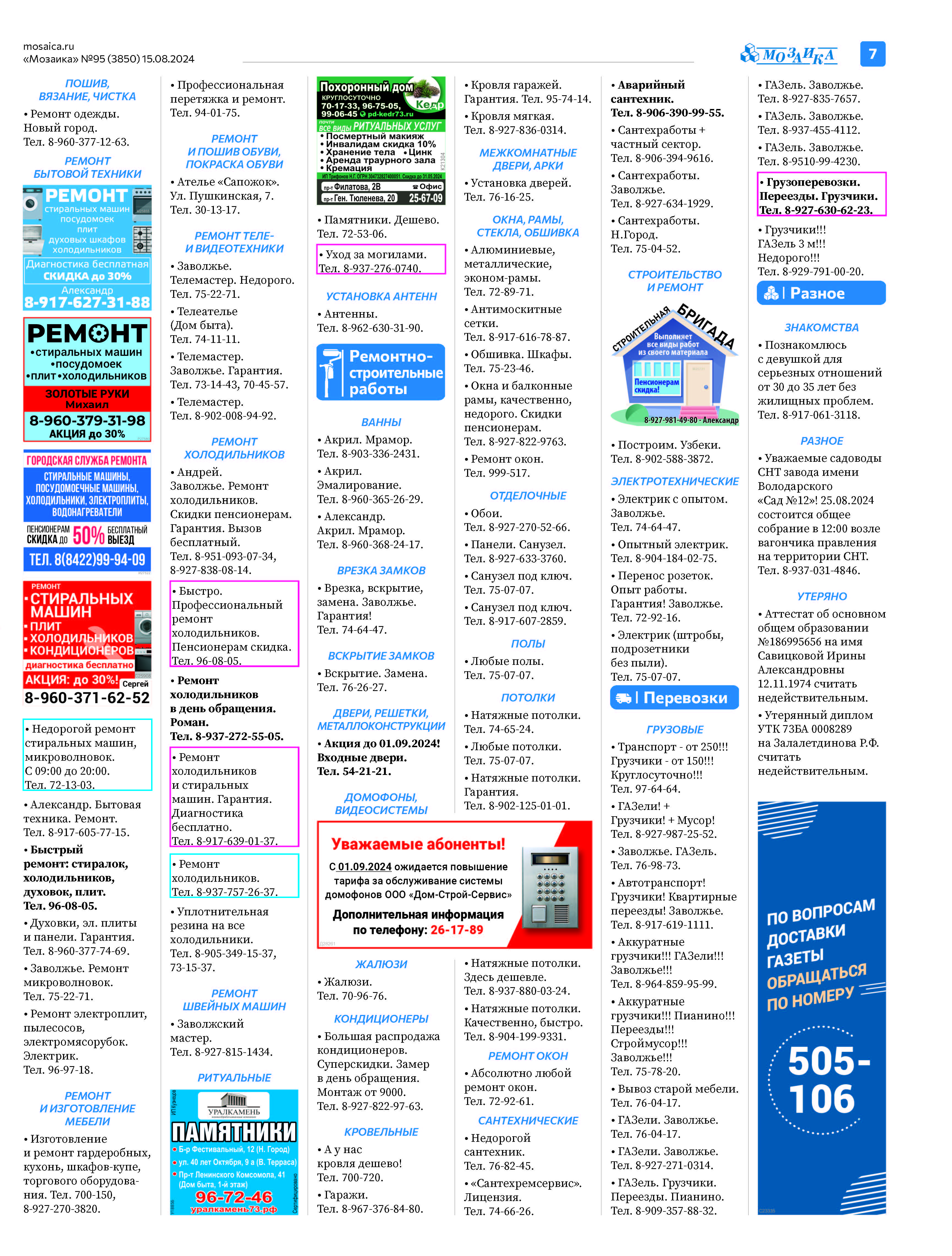 "Мозаика" №95 (3850) от 15 августа 2024 г.