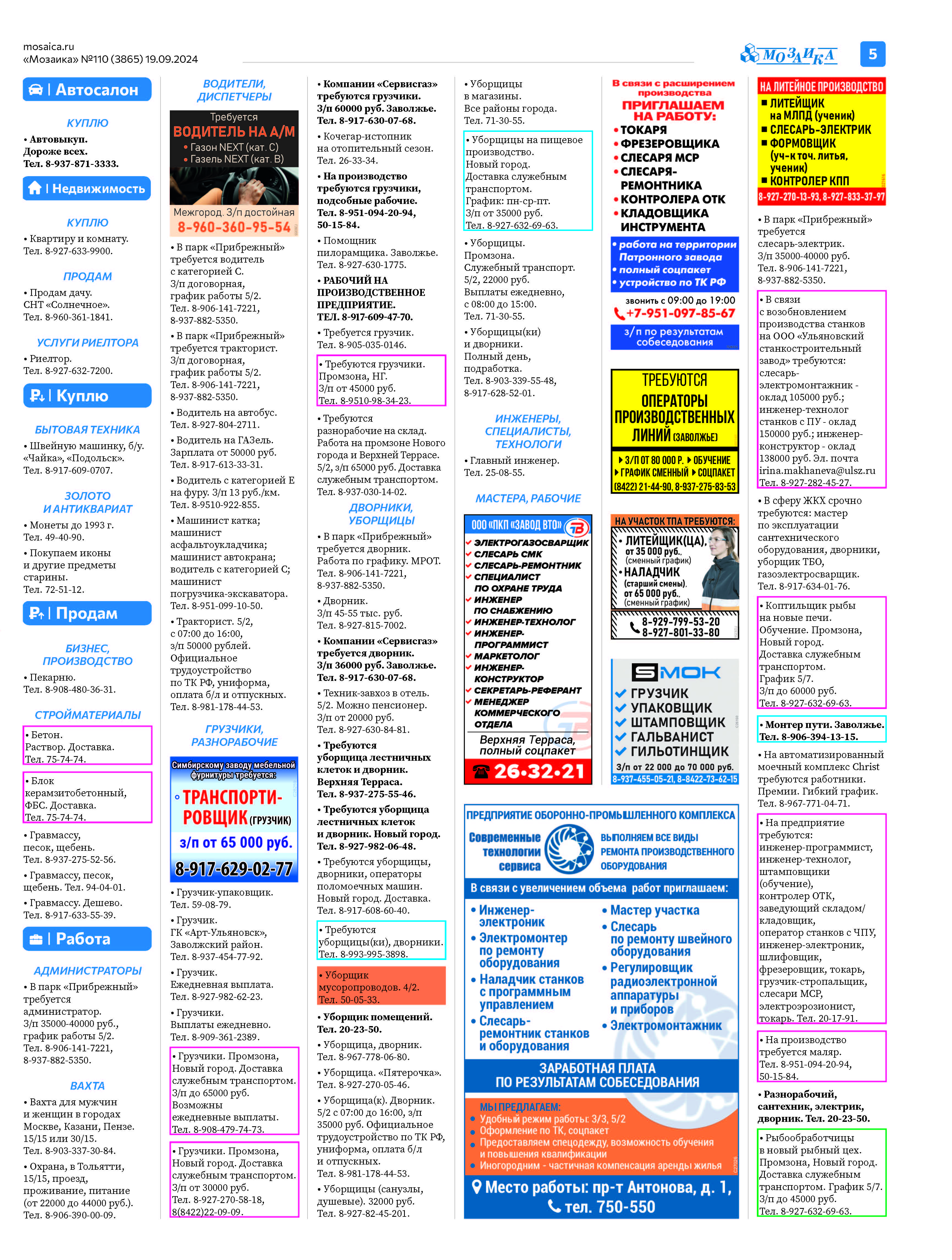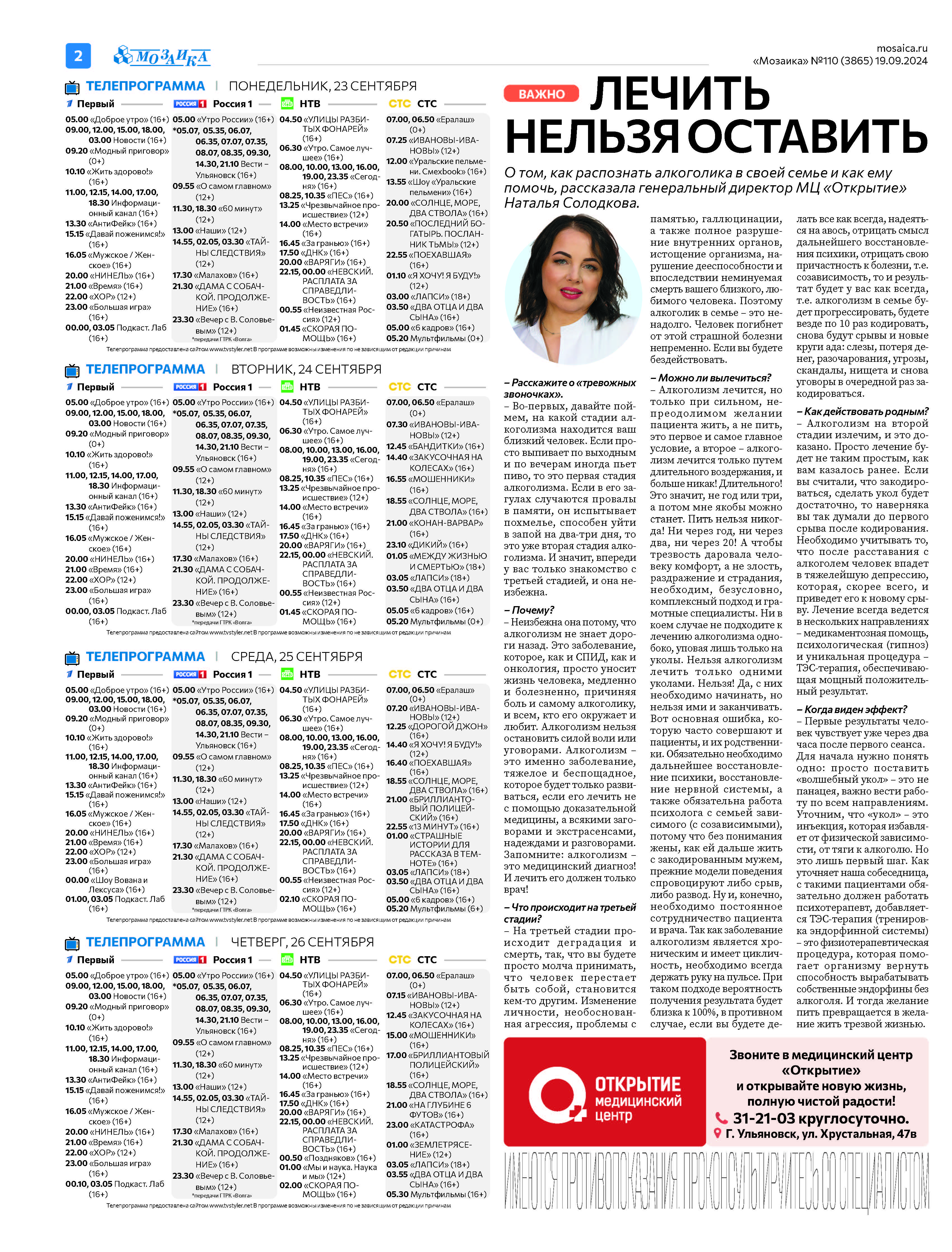 "Мозаика" №110 (3865) от 19 сентября 2024 г.