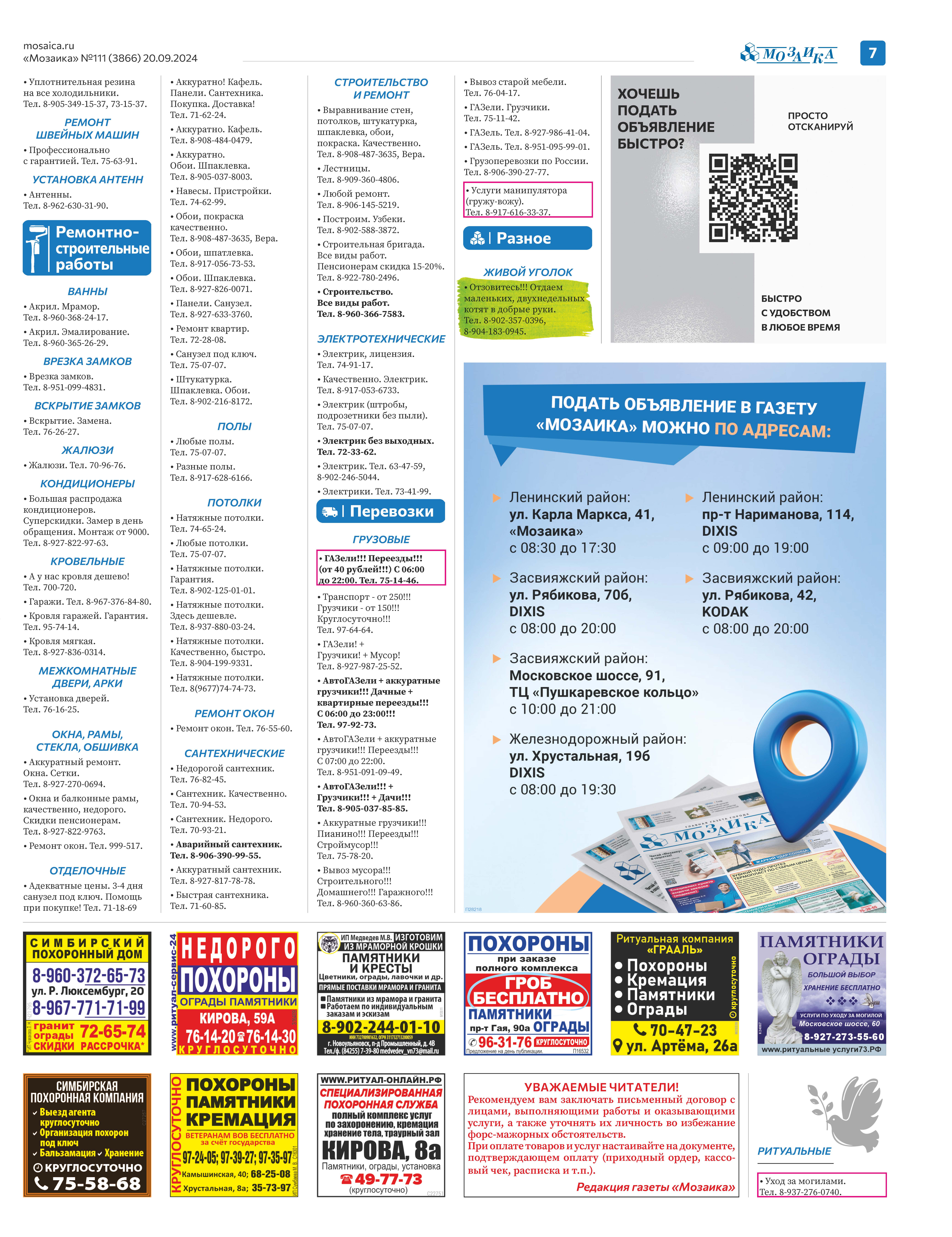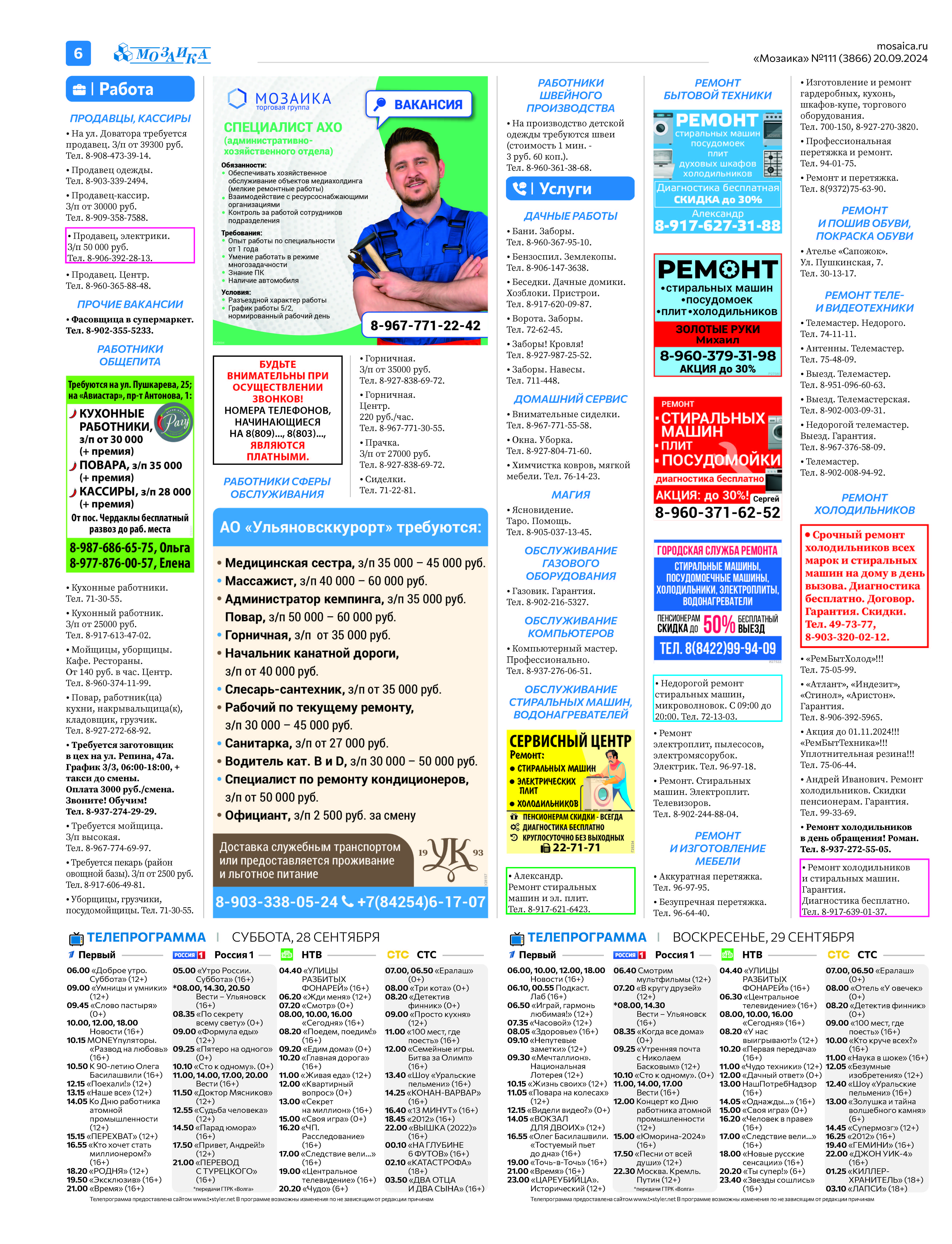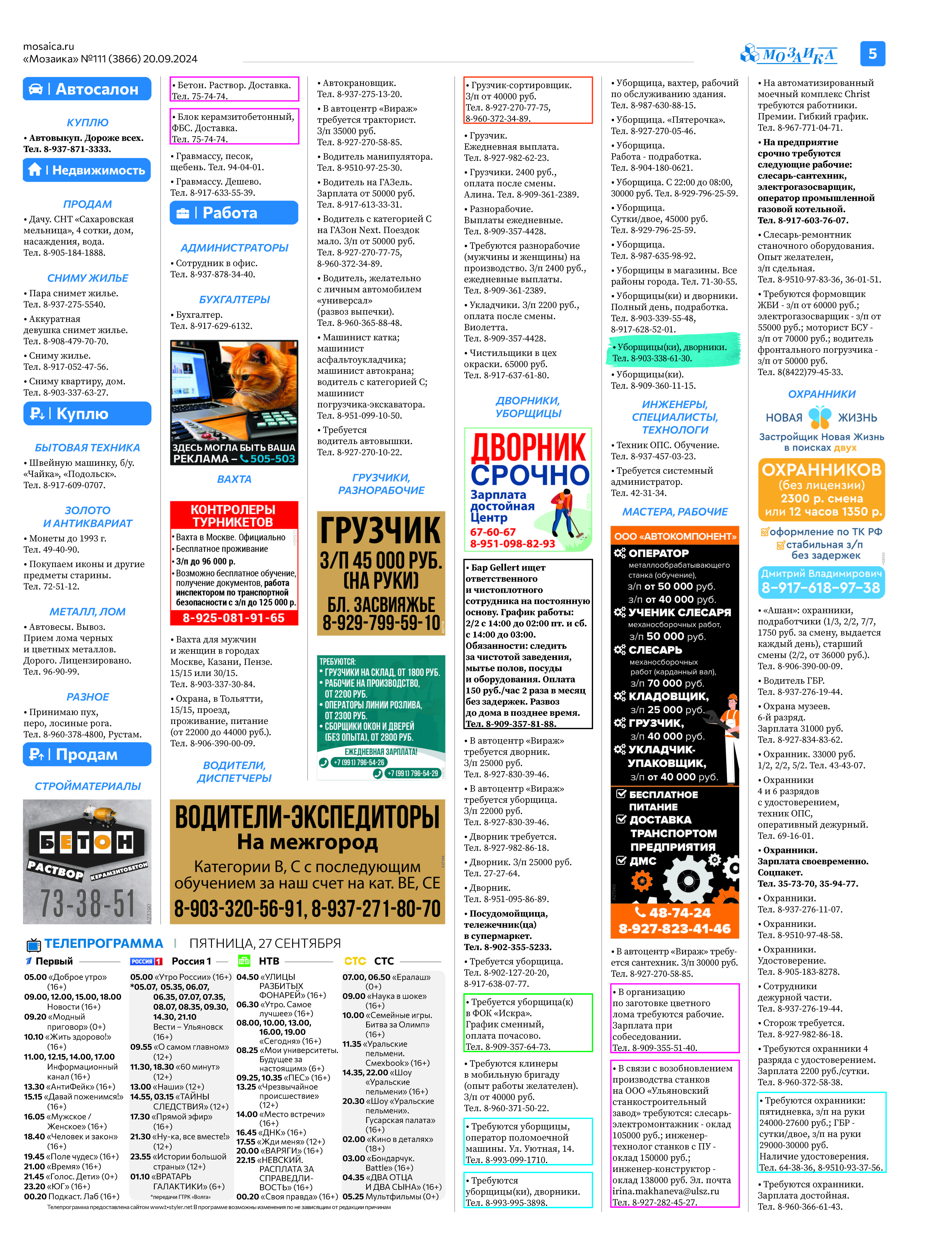 "Мозаика" №111 (3866) от 20 сентября 2024 г.
