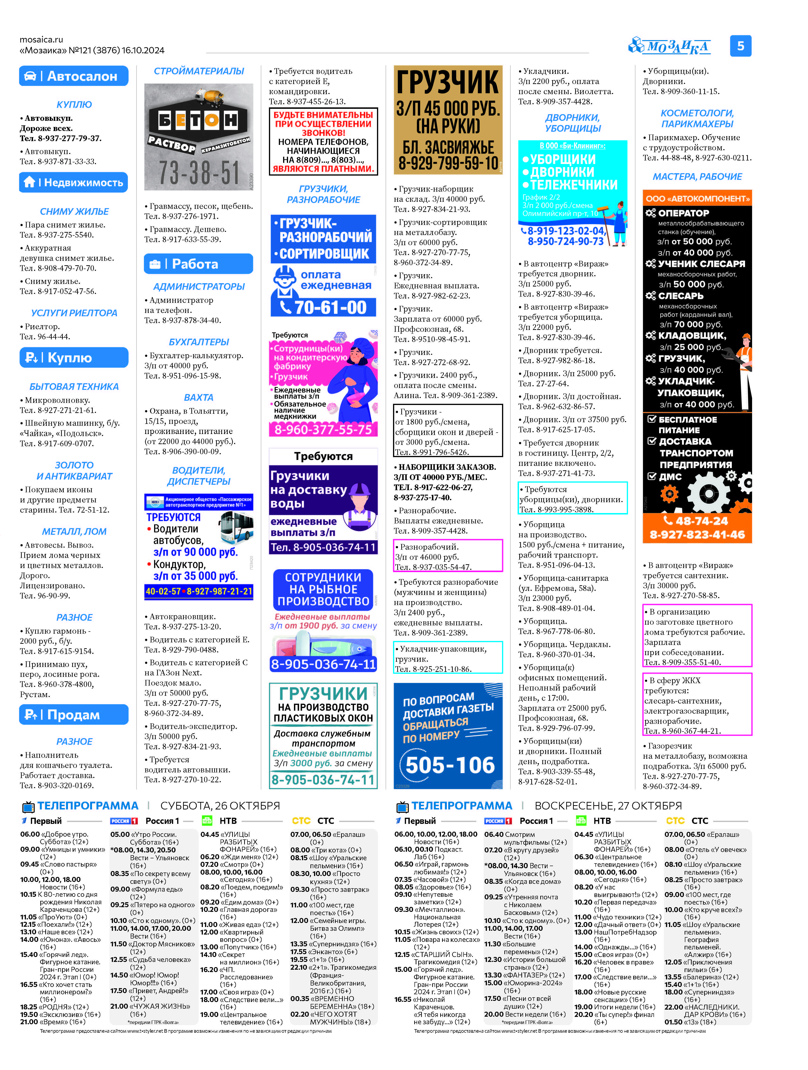 "Мозаика" №121 (3876) от 16 октября 2024 г.