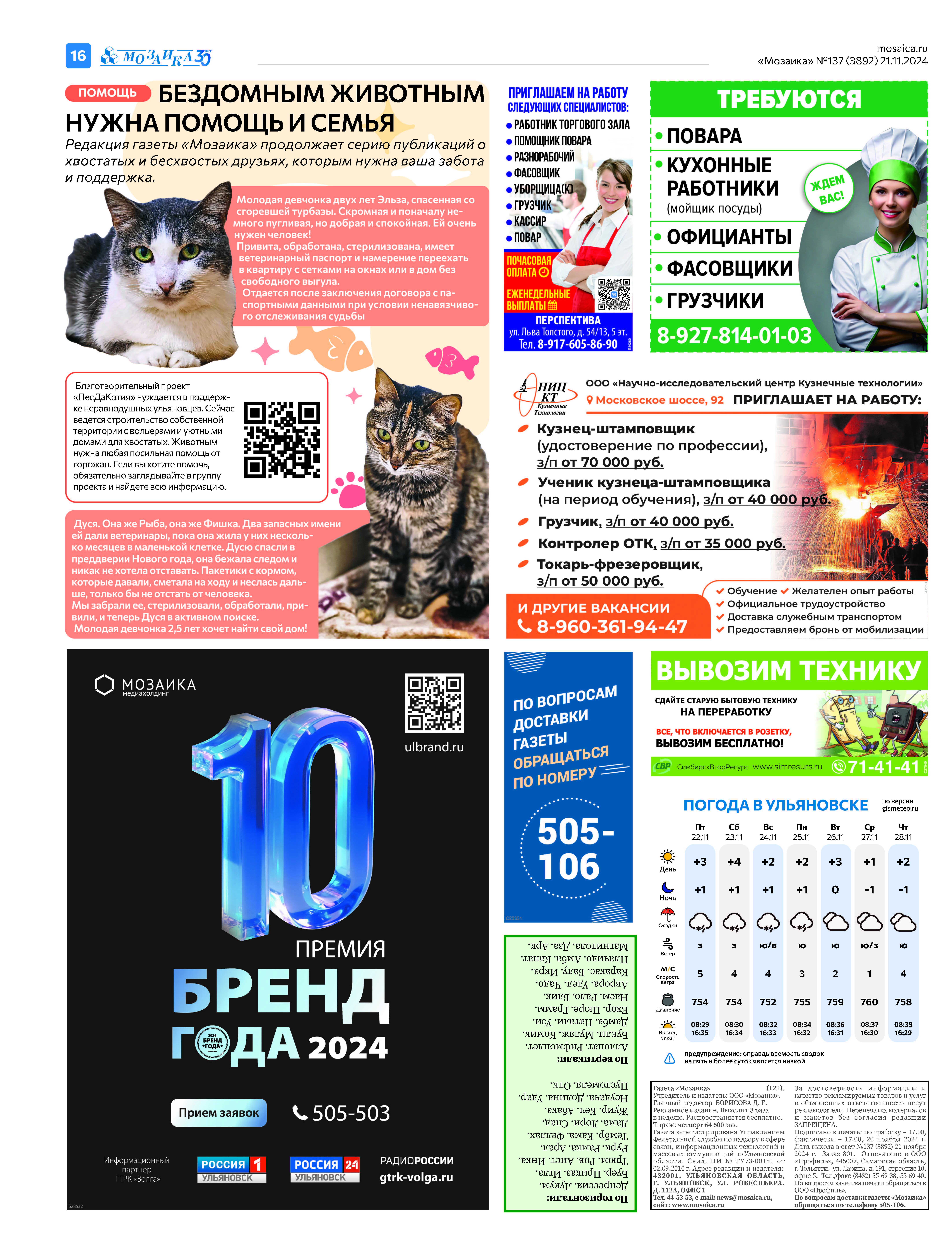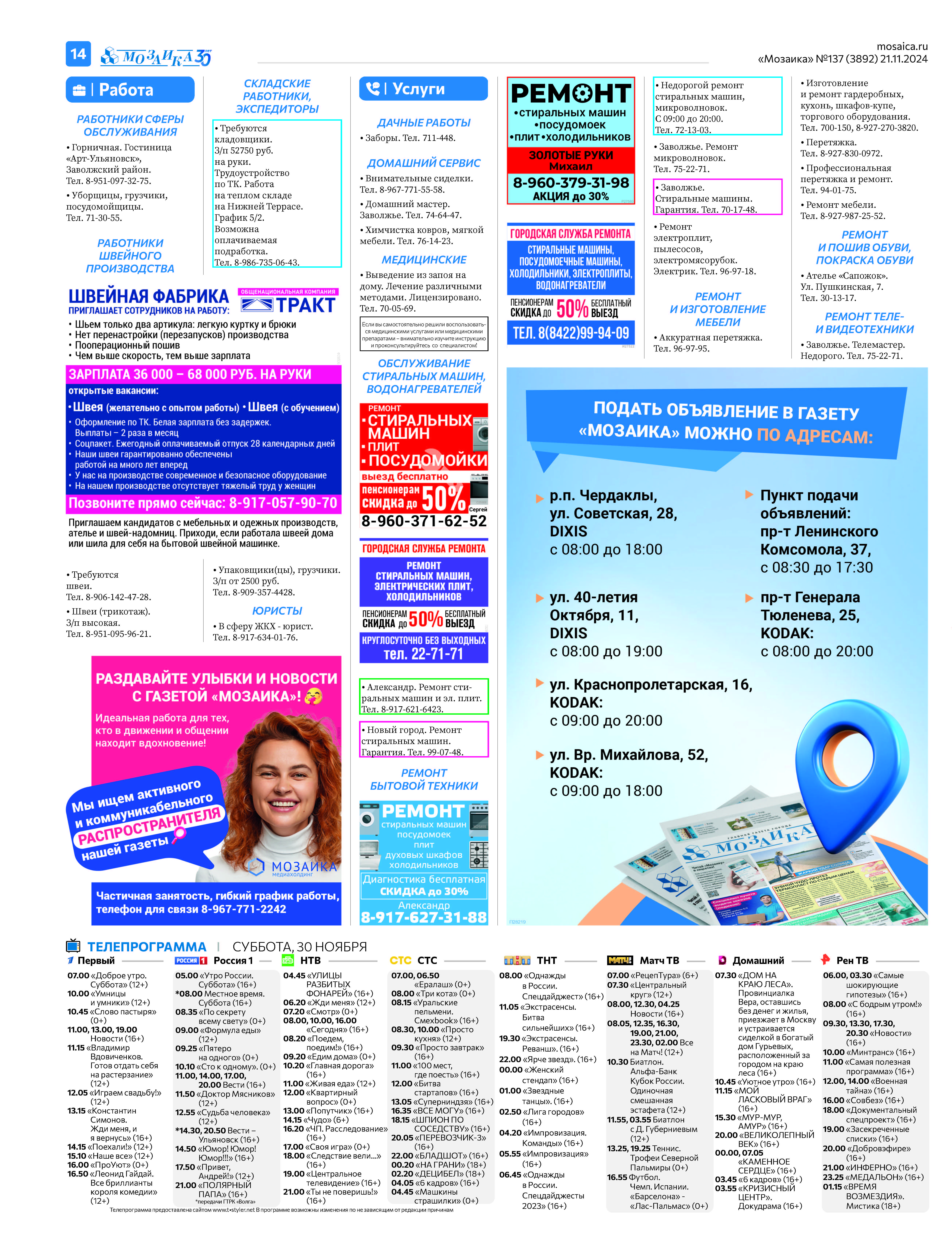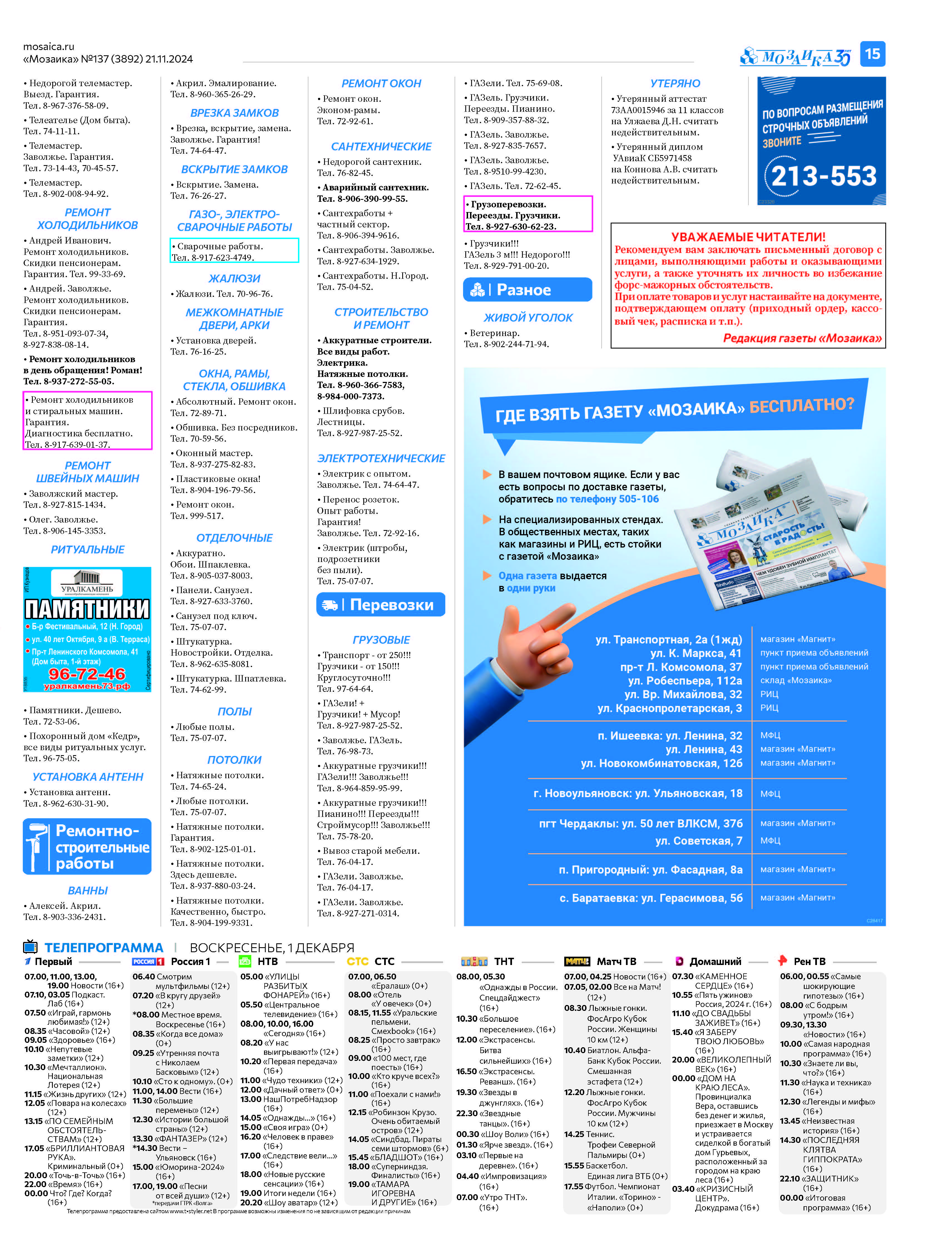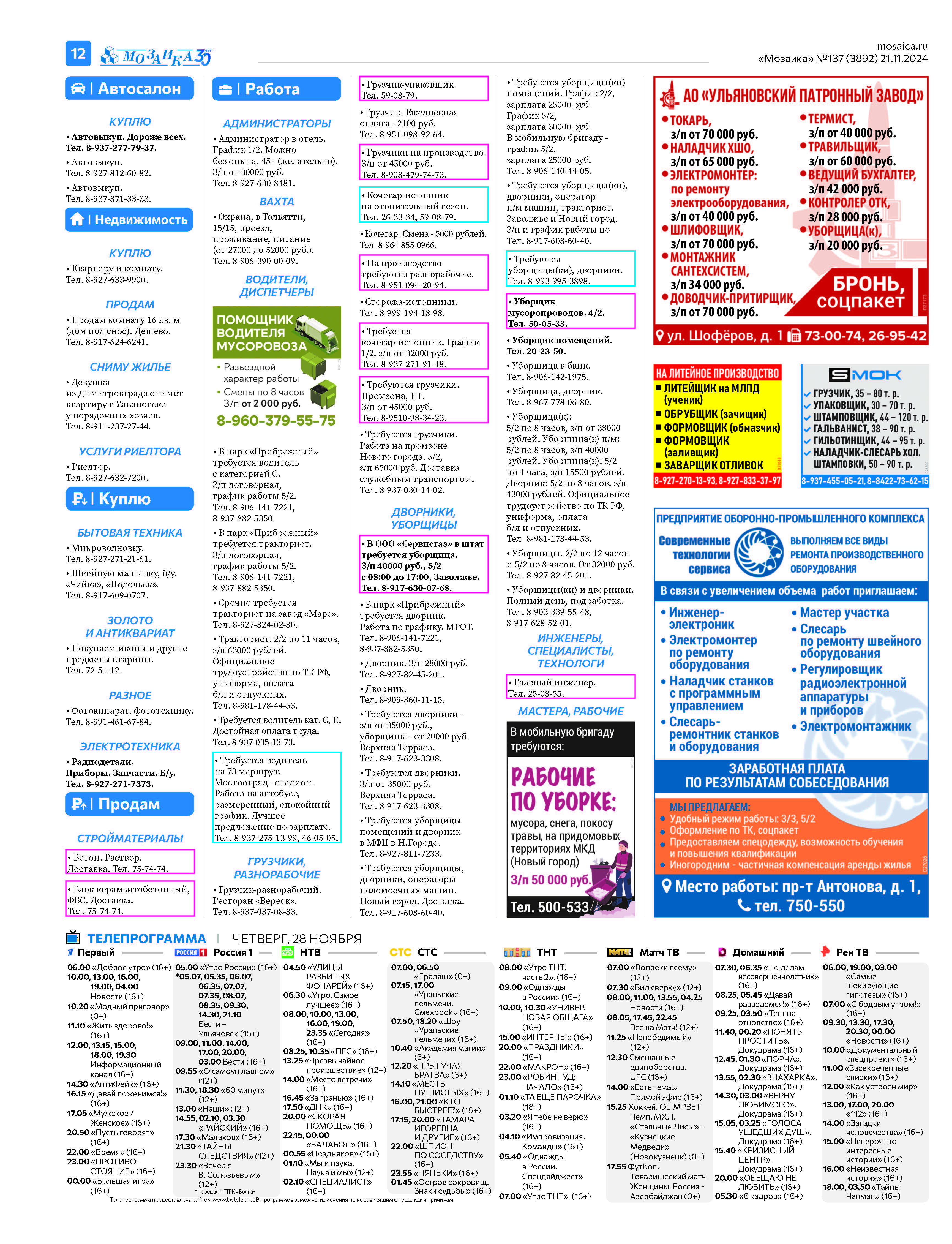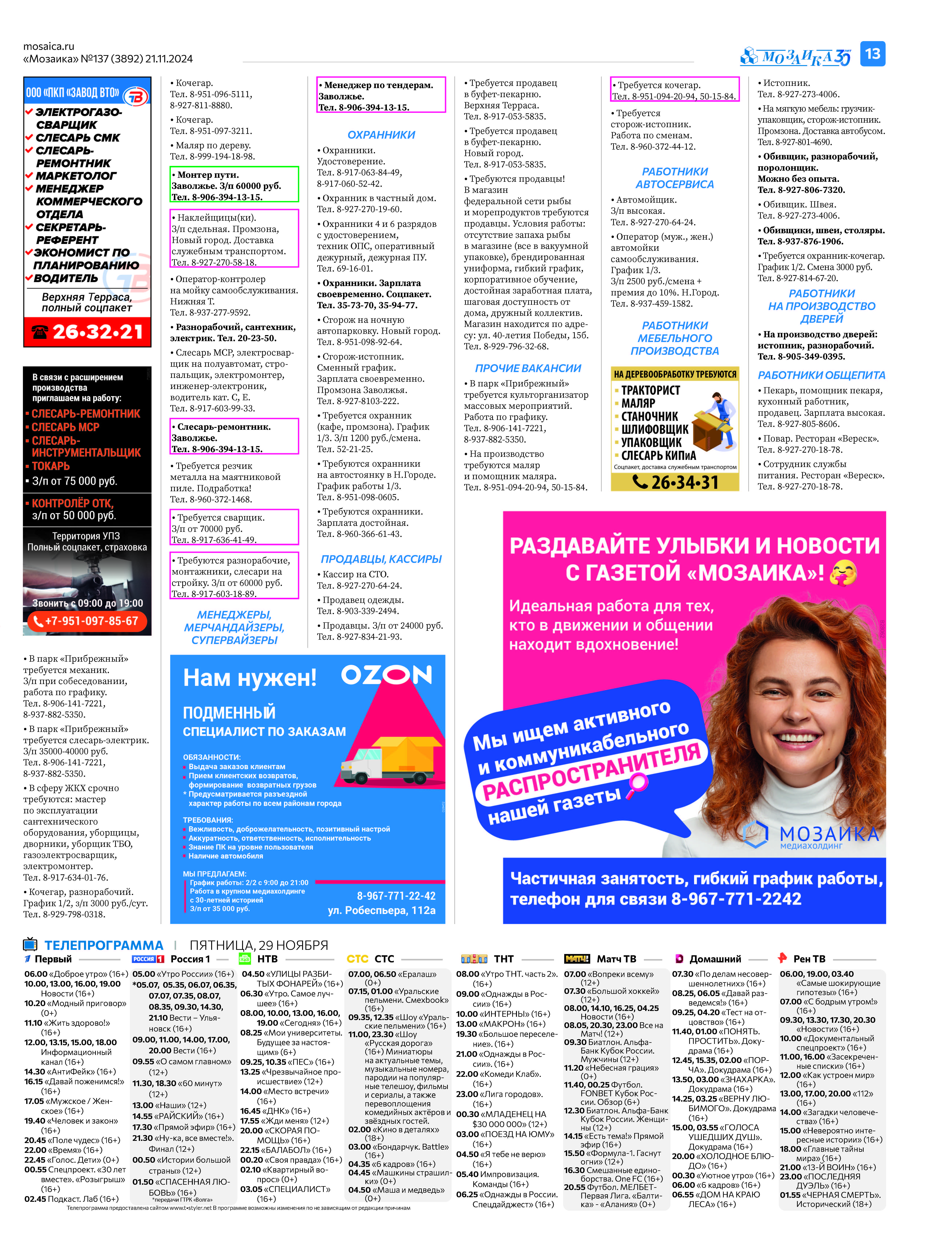 "Мозаика" №137 (3892) от 21 ноября 2024 г.