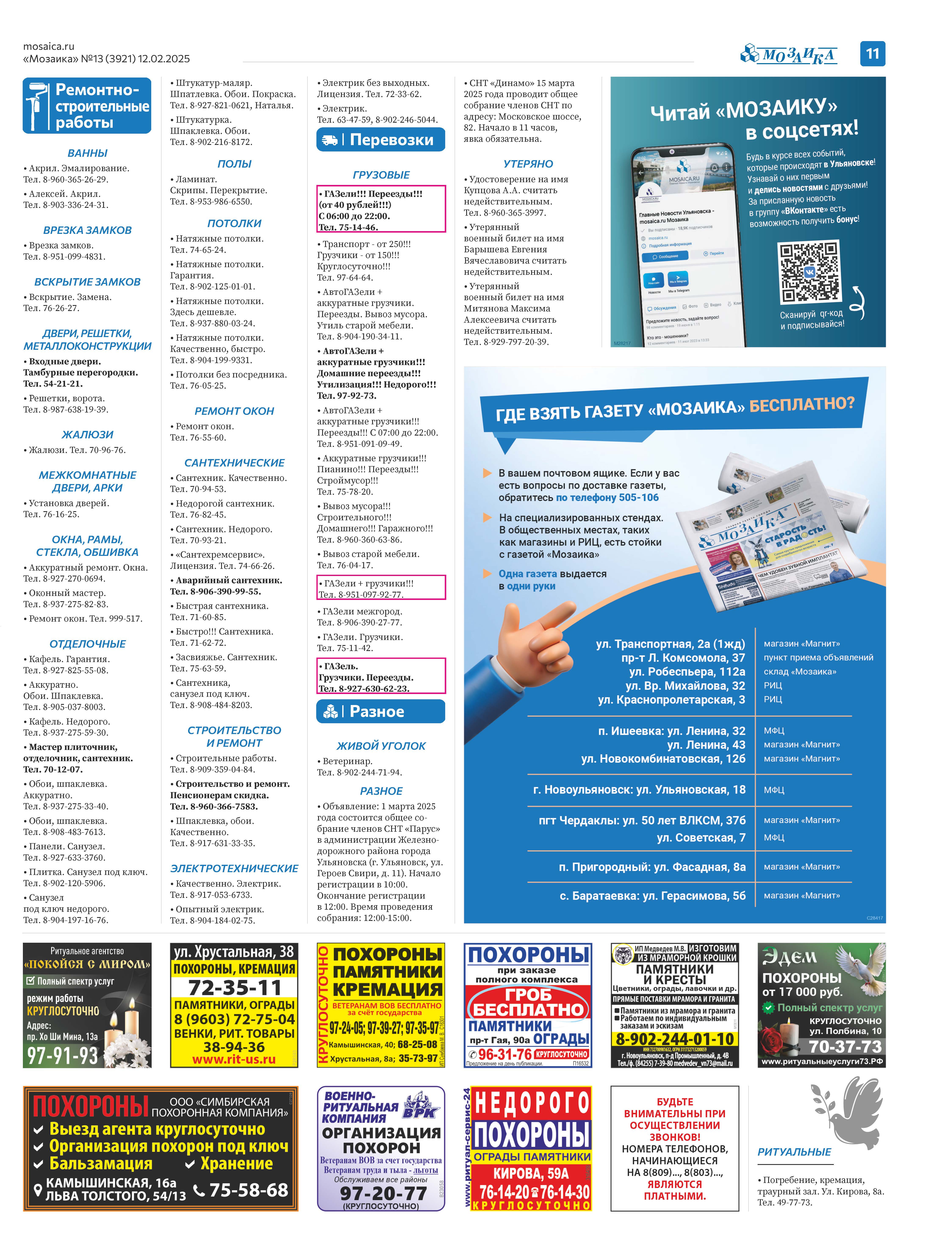 "Мозаика" №13 (3921) от 12 февраля 2025 г.