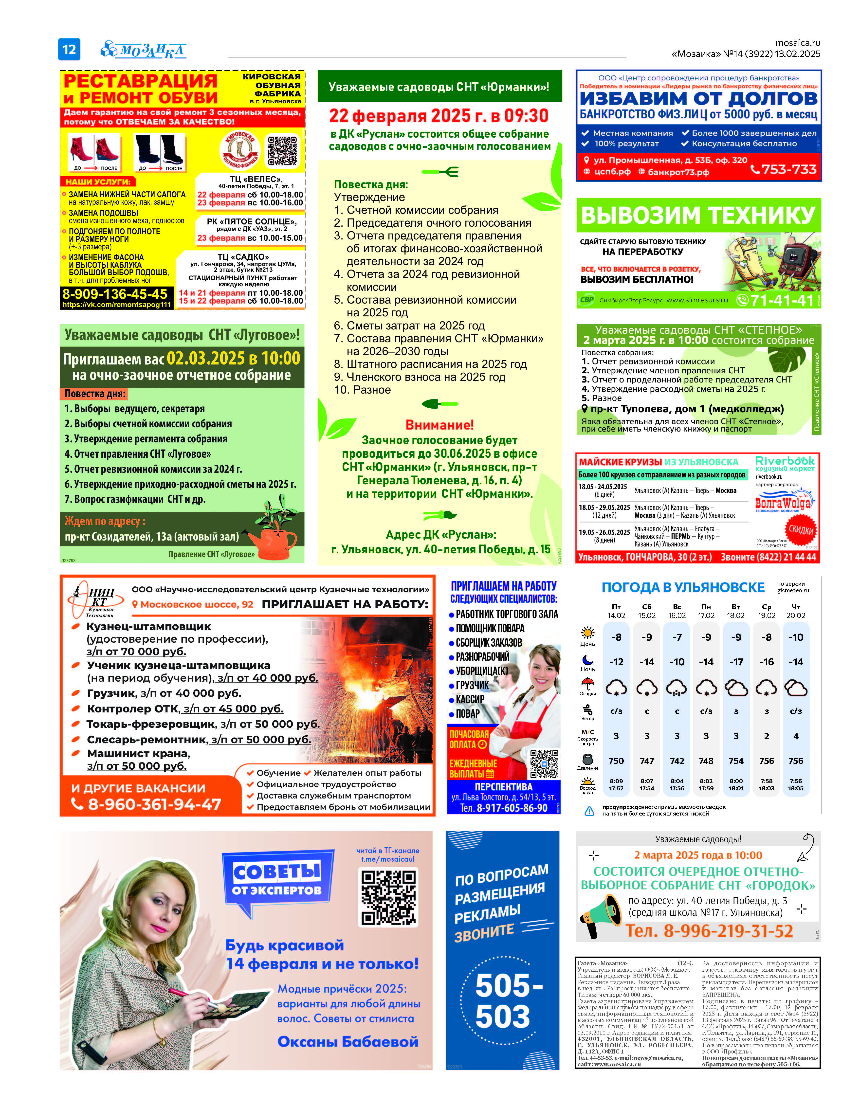 "Мозаика" №14 (3922) от 13 февраля 2025 г.