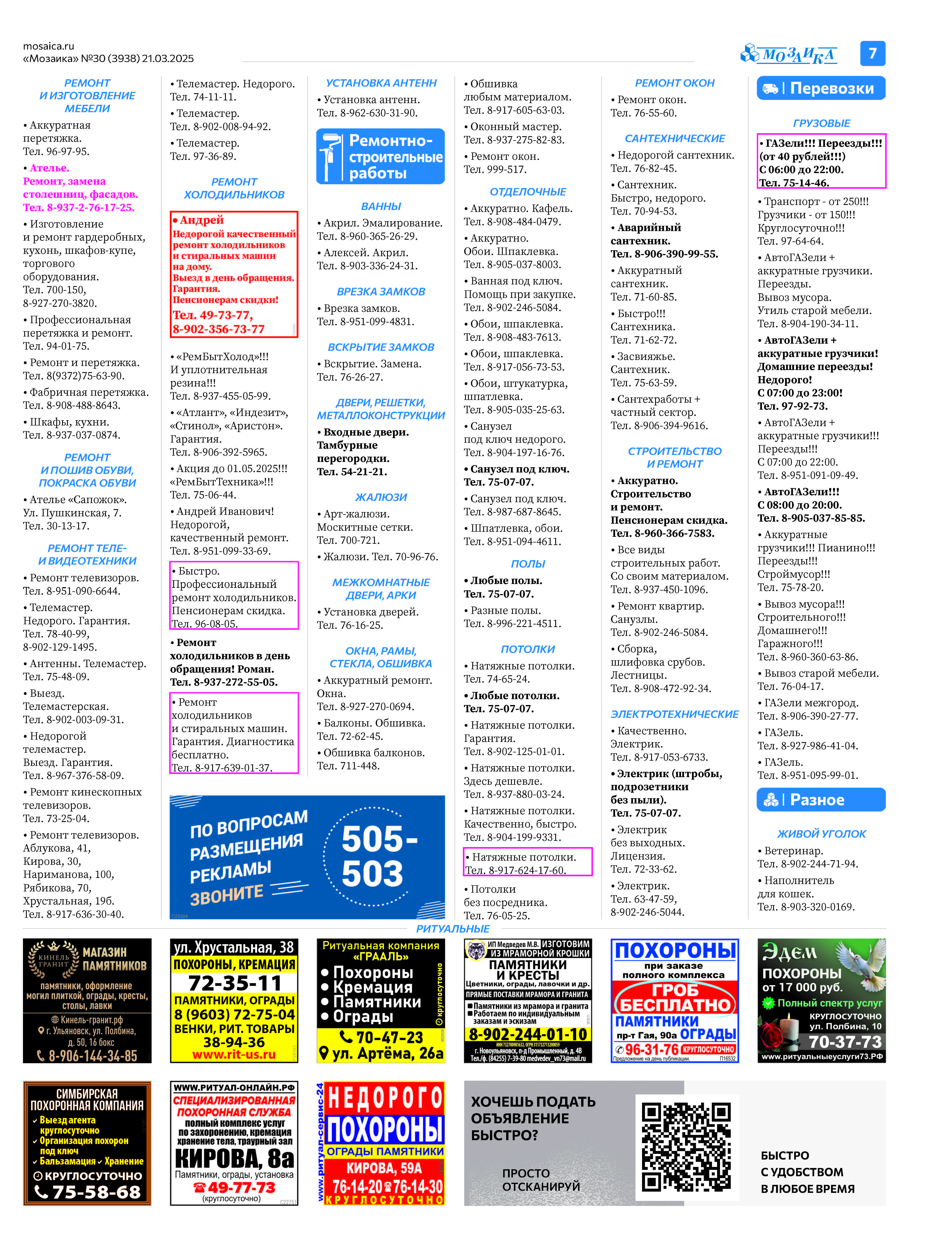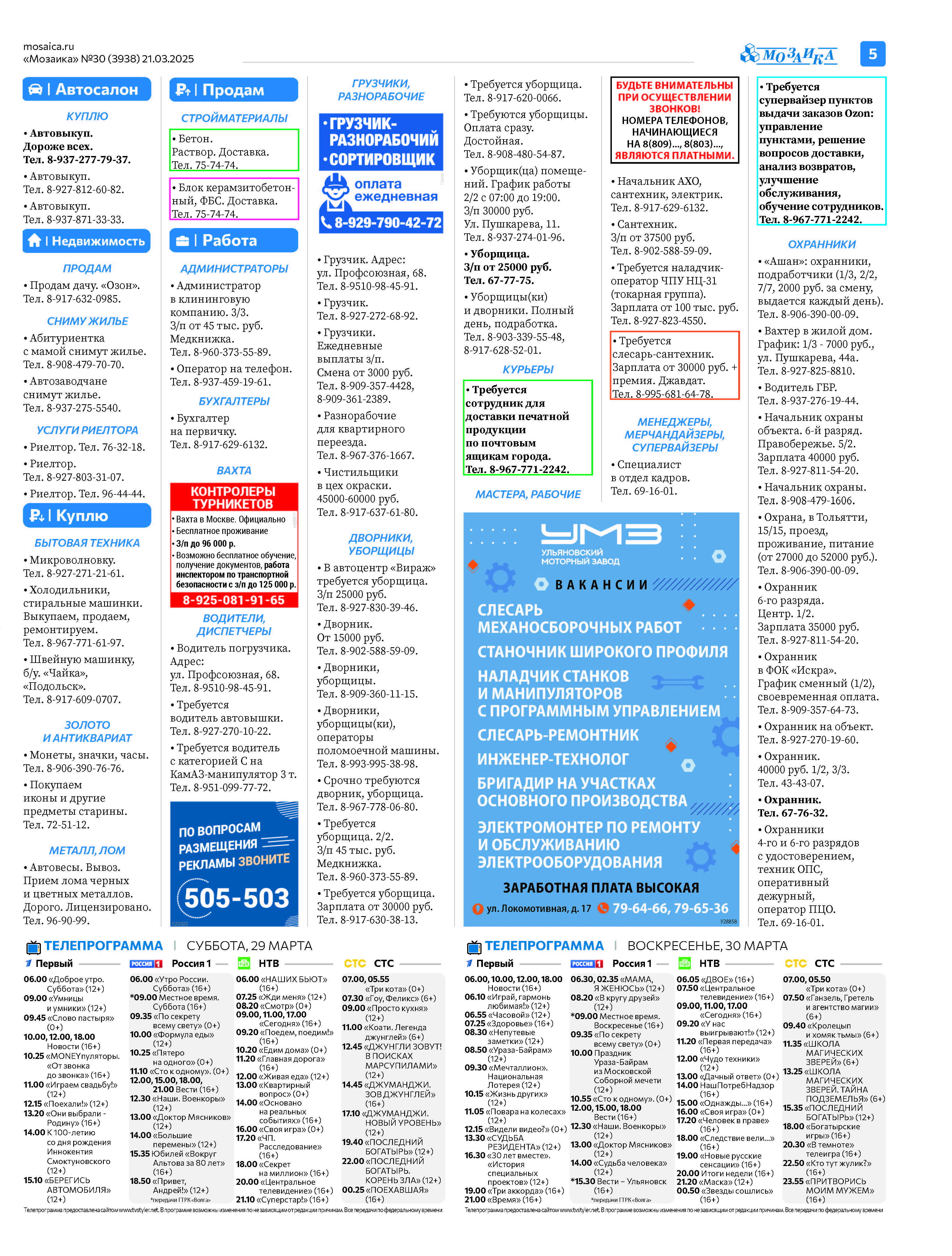 "Мозаика" №30 (3938) от 21 марта 2025 г.