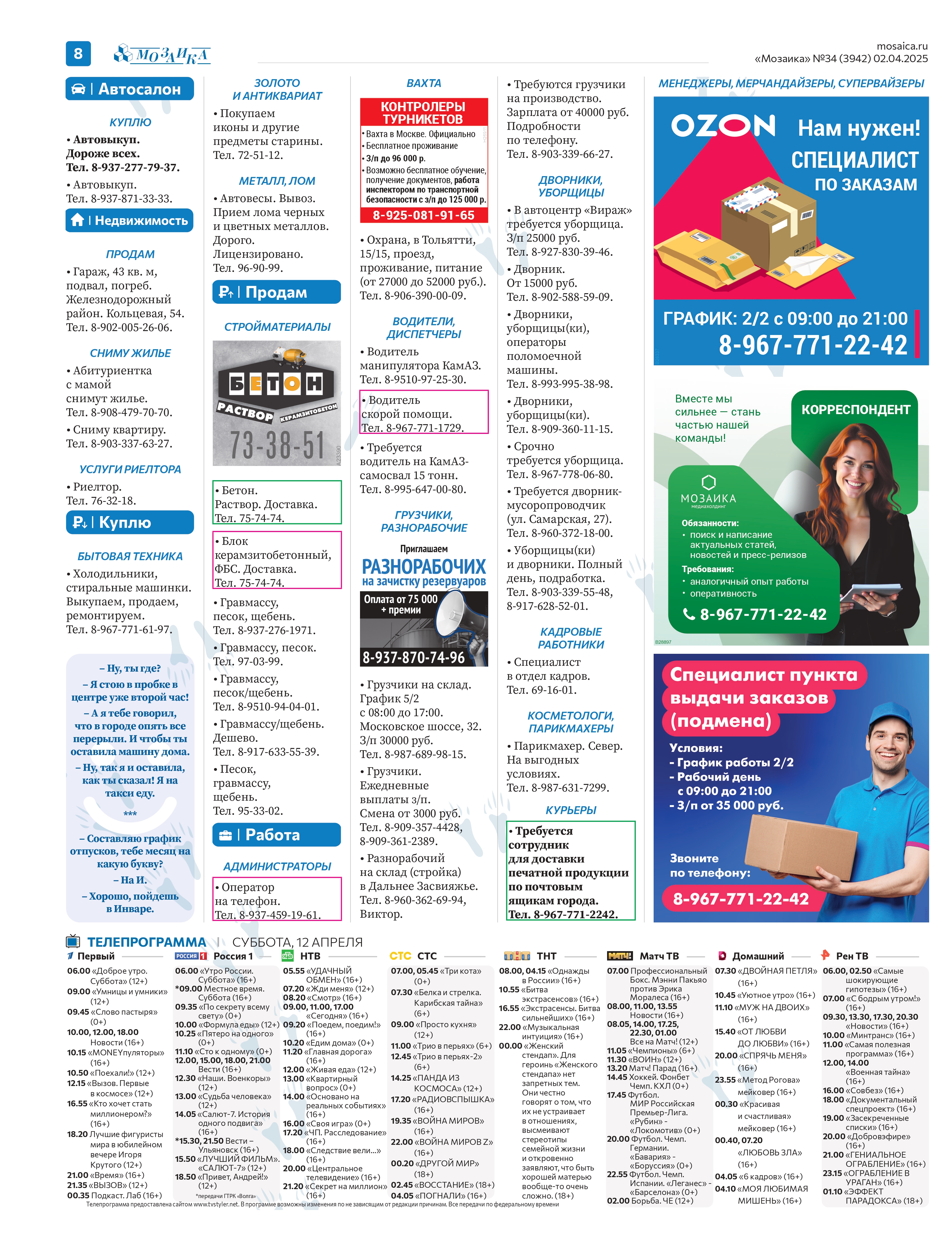 "Мозаика" №34 (3942) от 2 апреля 2025 г.