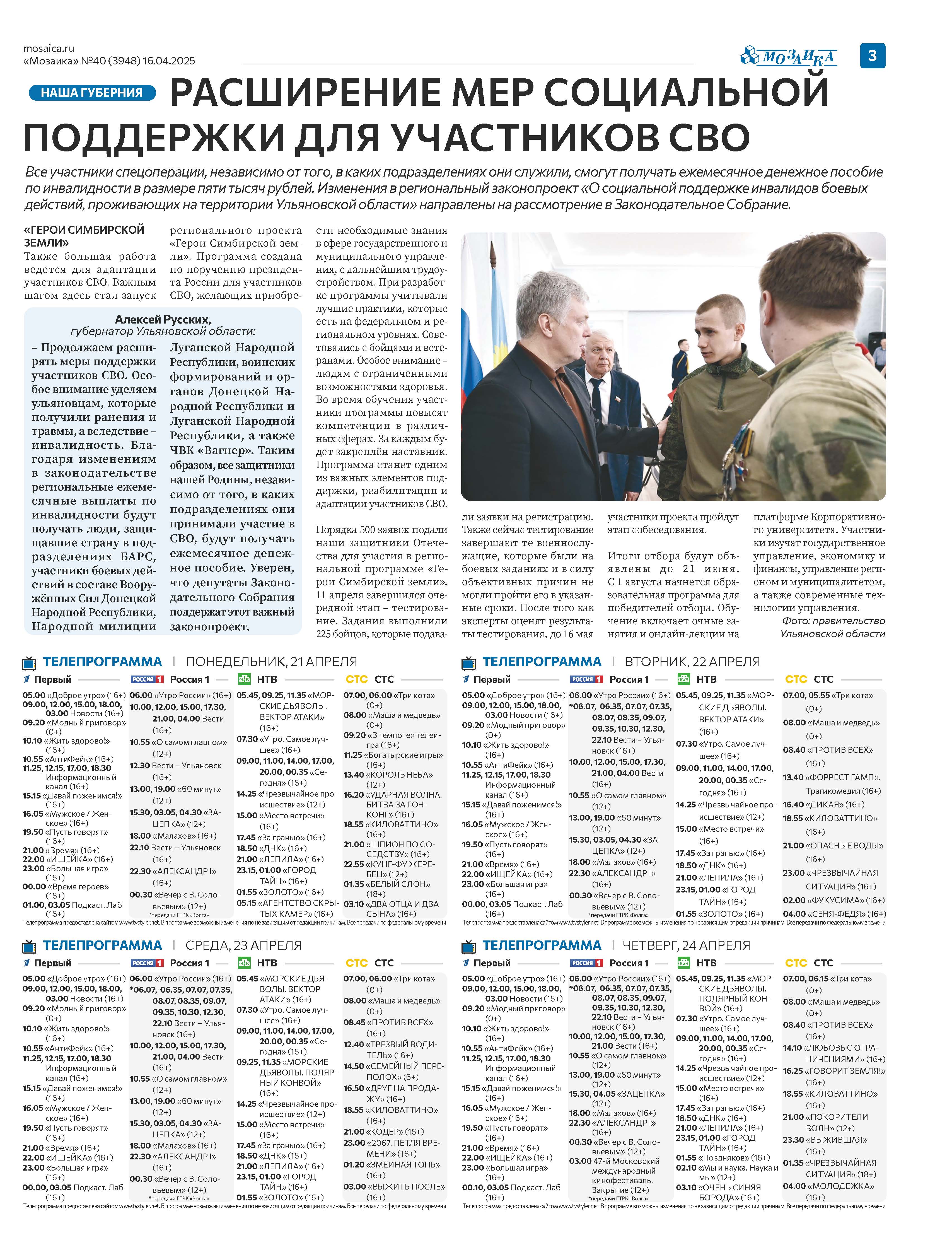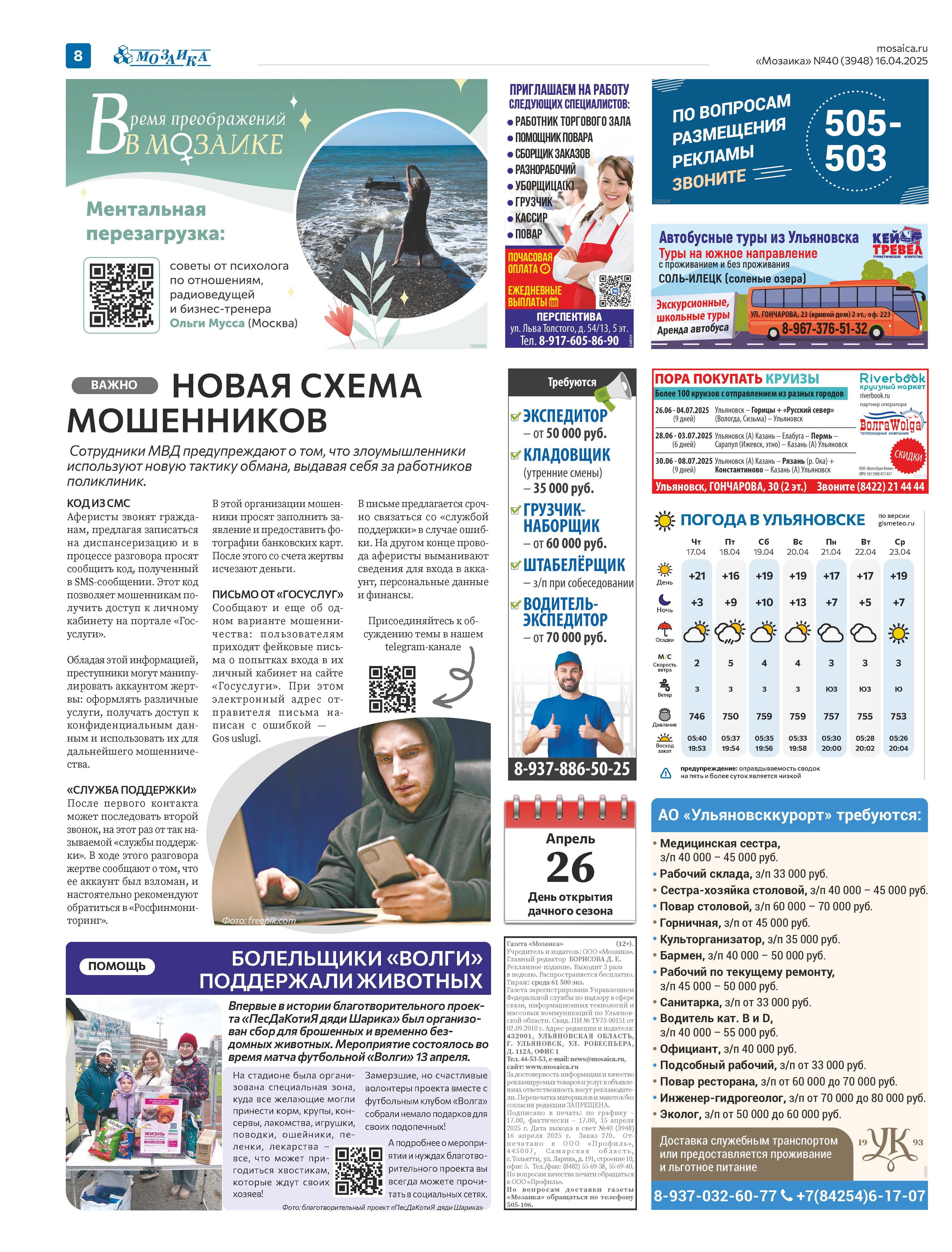 "Мозаика" №40 (3948) от 16 апреля 2025 г.