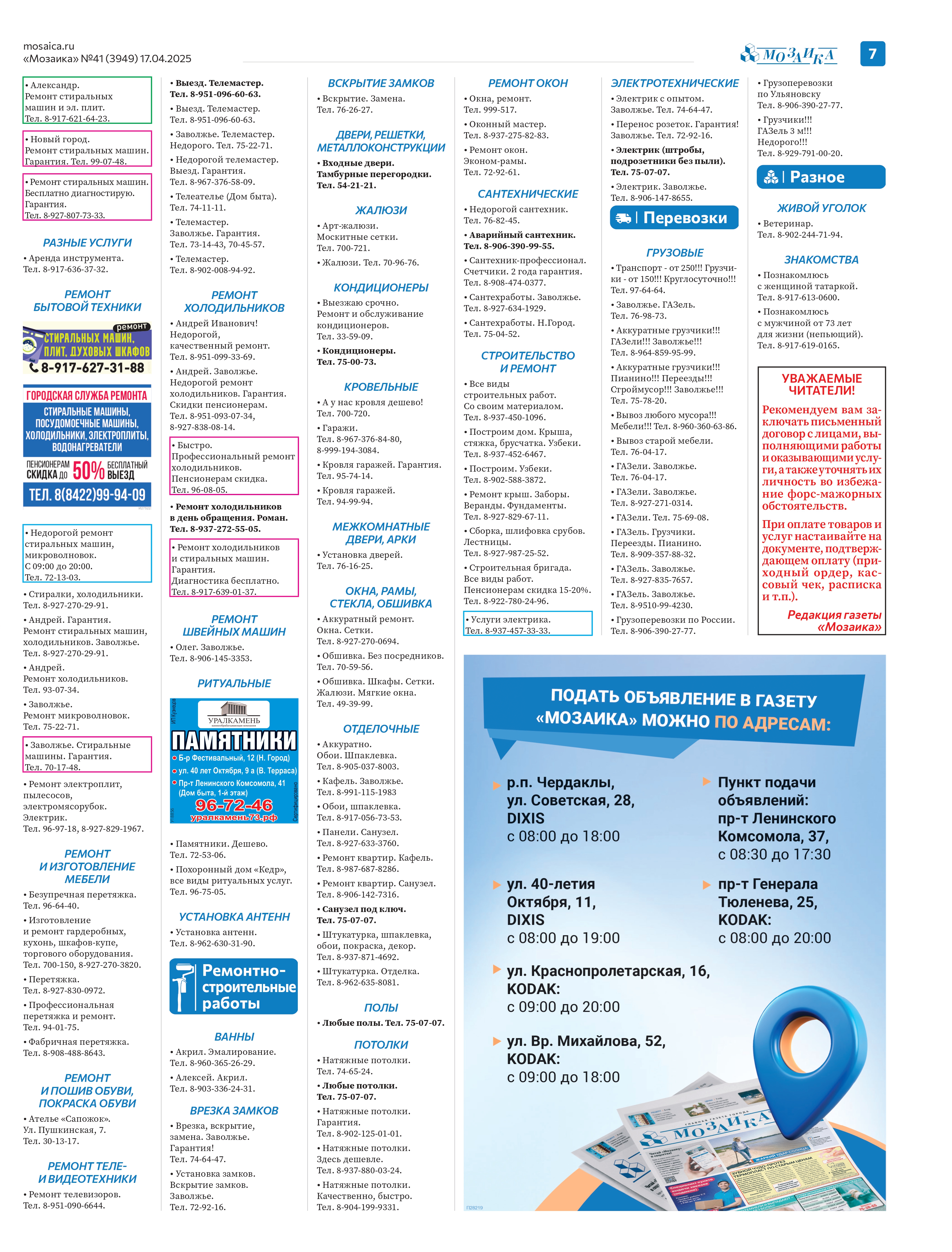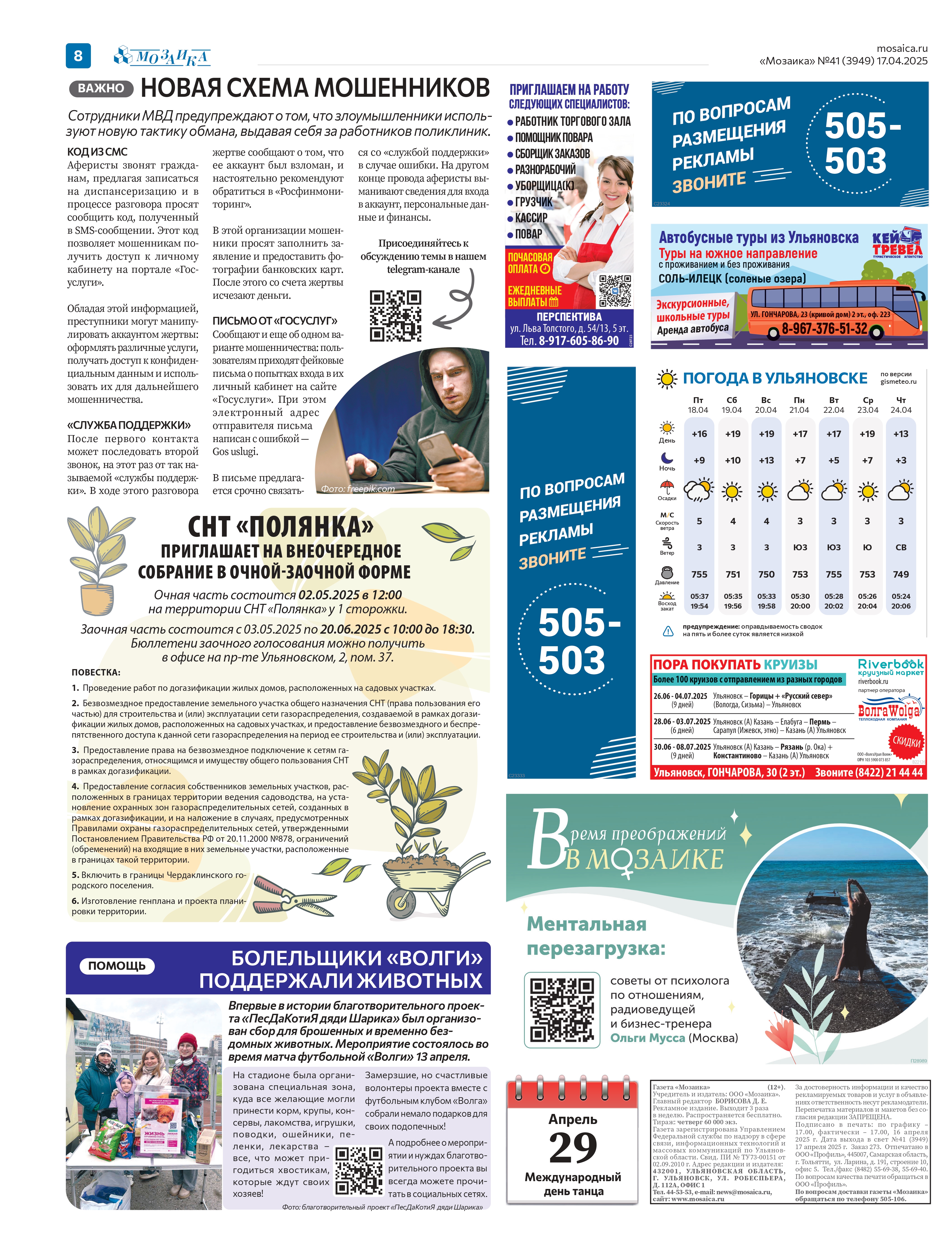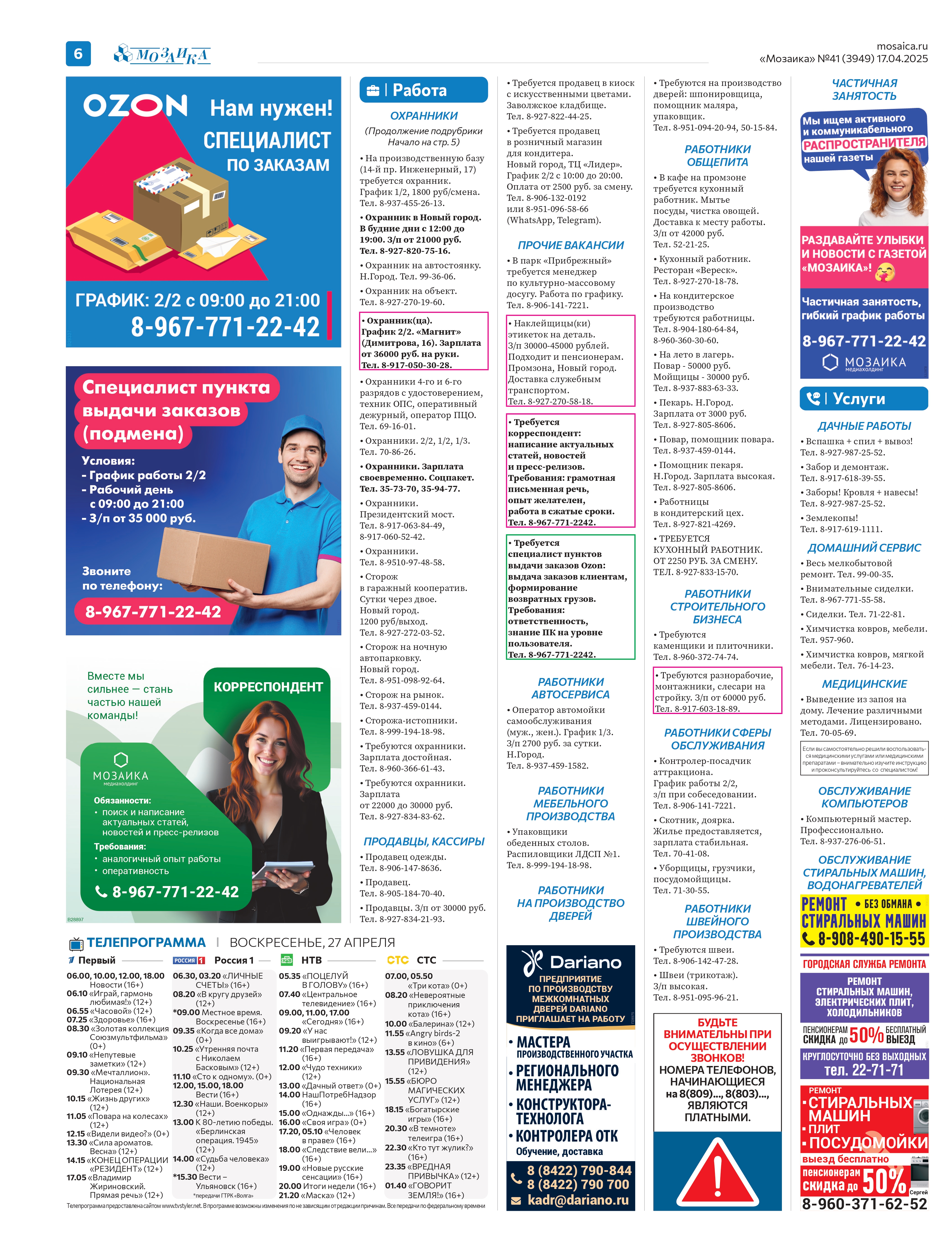 "Мозаика" №41 (3949) от 17 апреля 2025 г.
