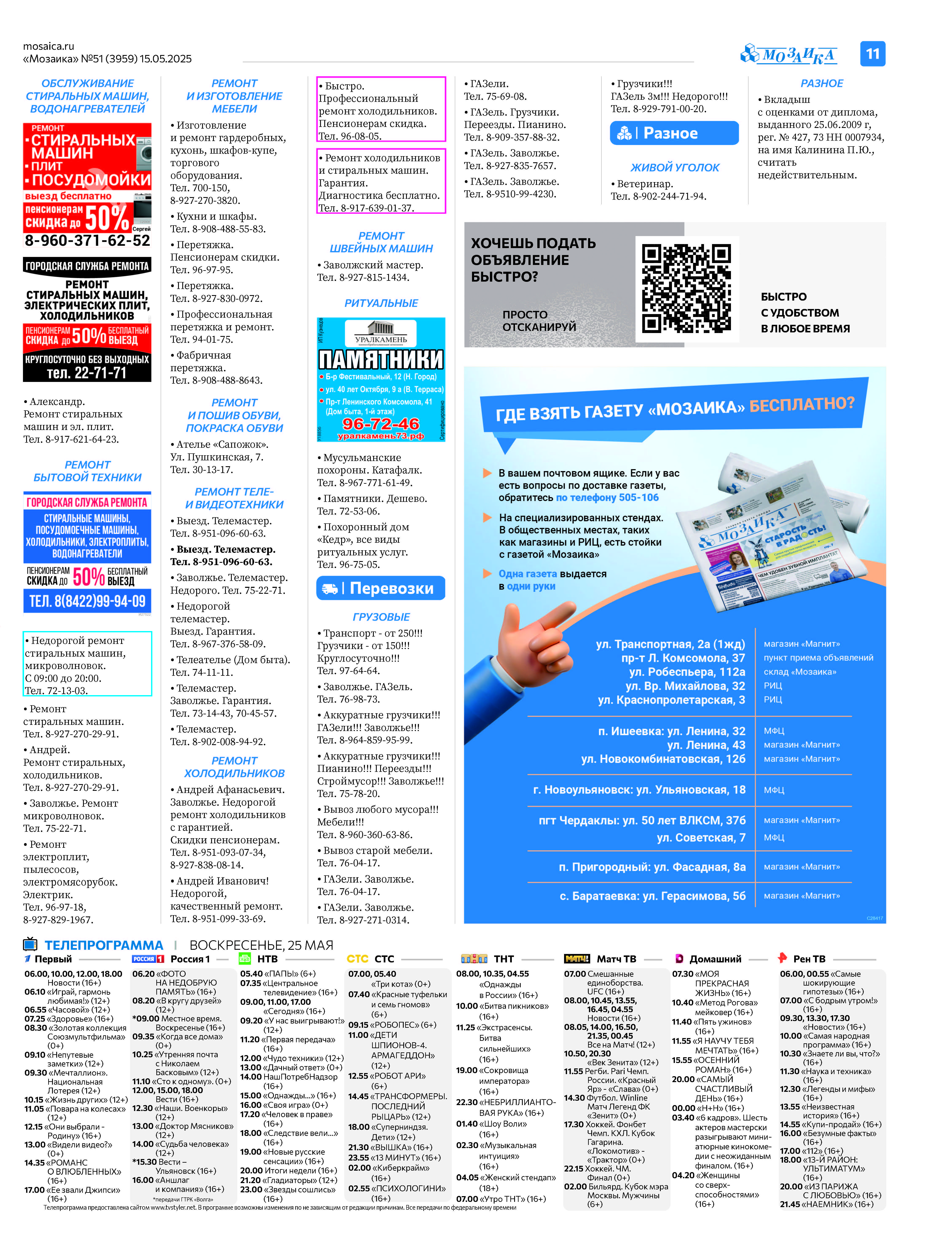 "Мозаика" №51 (3959) от 15 мая 2025 г.