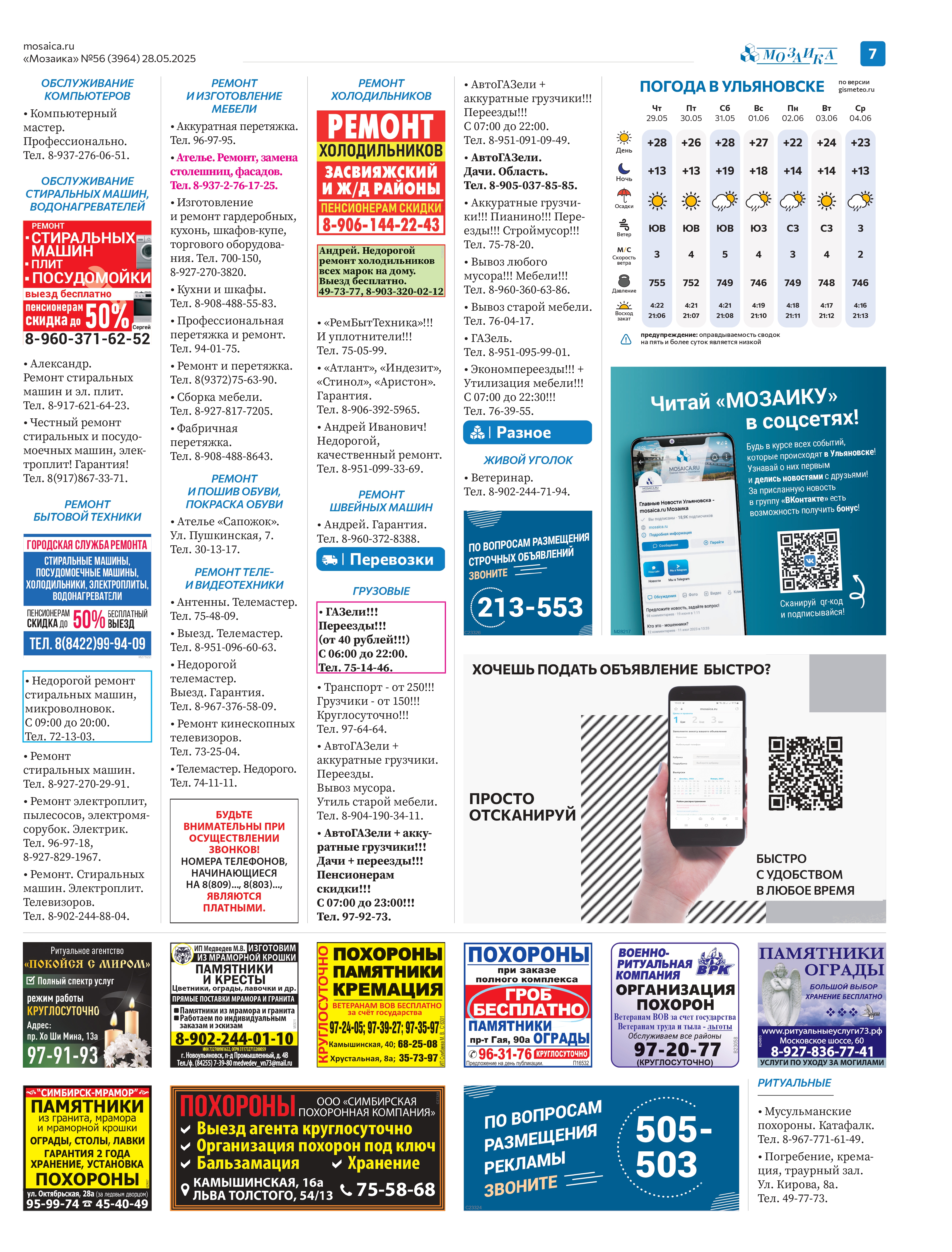 "Мозаика" №56 (3964) от 28 мая 2025 г.