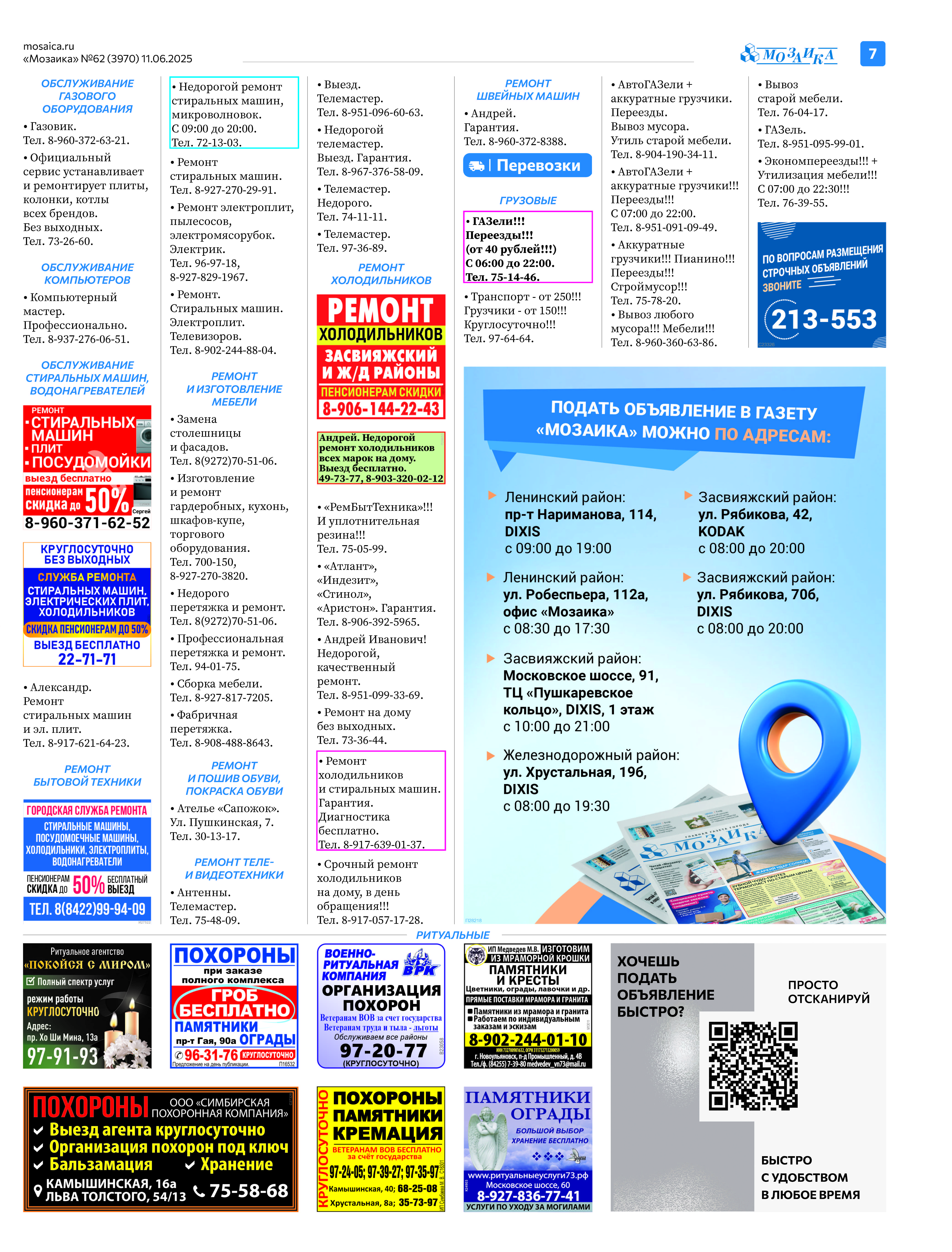 "Мозаика" №62 (3970) от 11 июня 2025 г.
