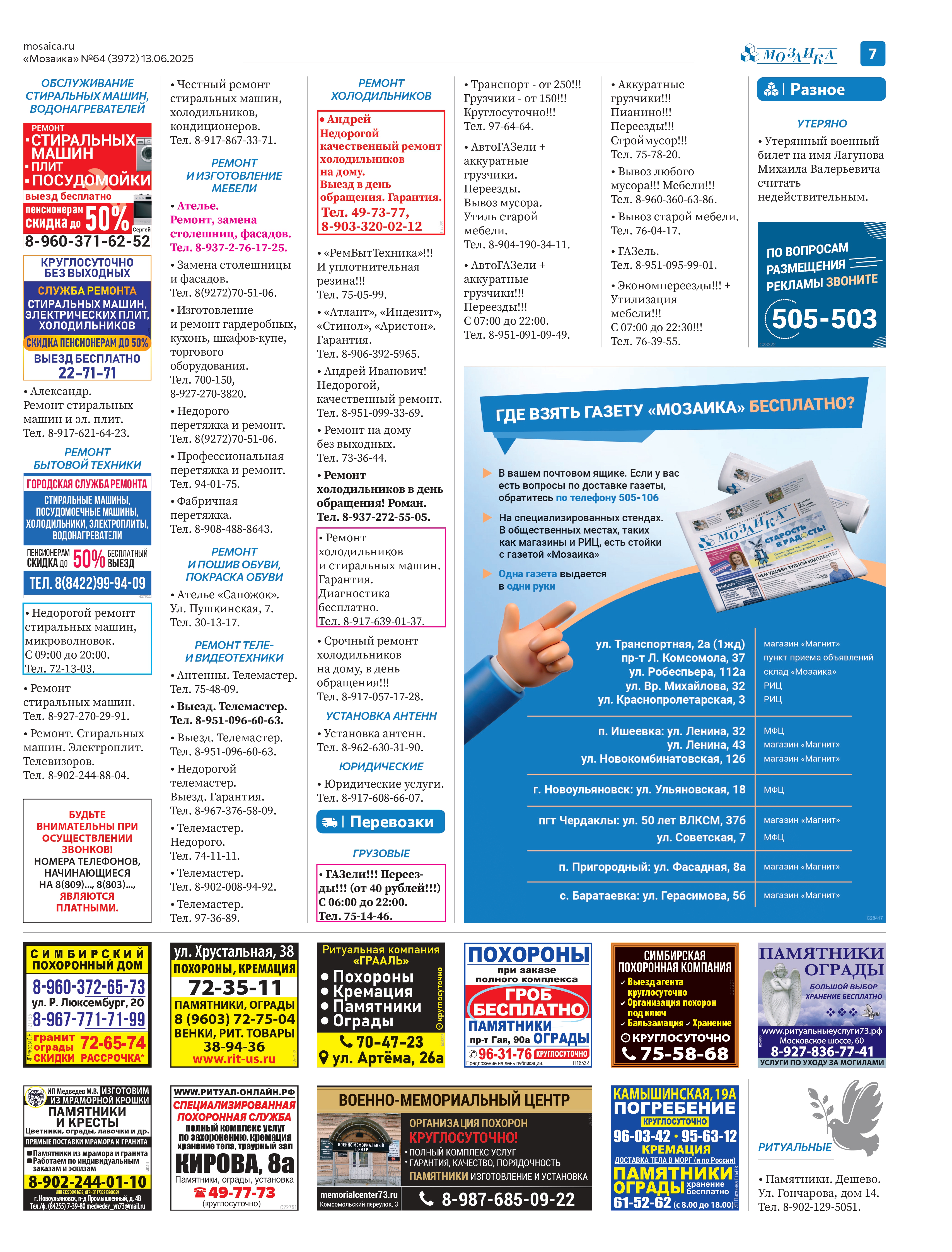 "Мозаика" №64 (3972) от 13 июня 2025 г.