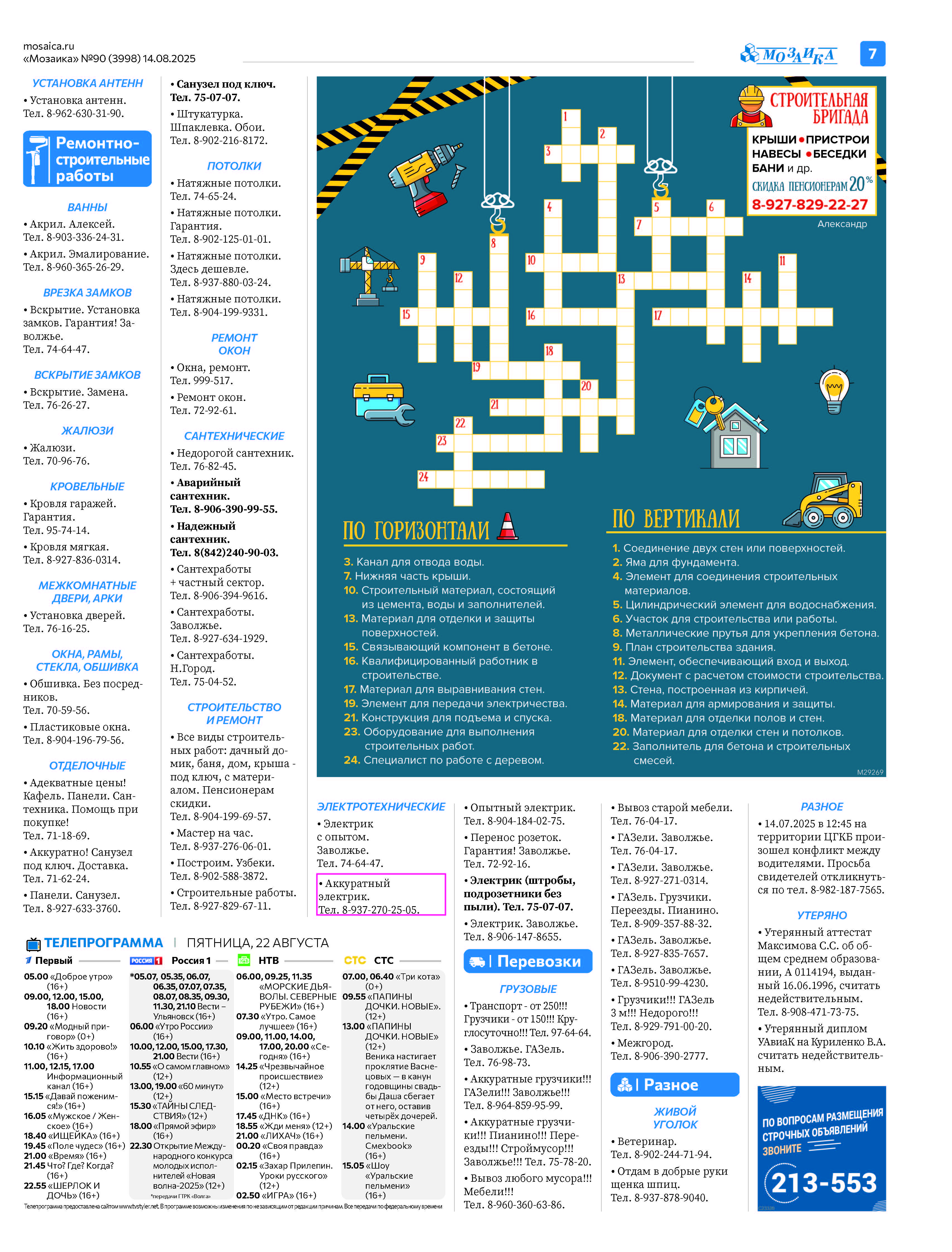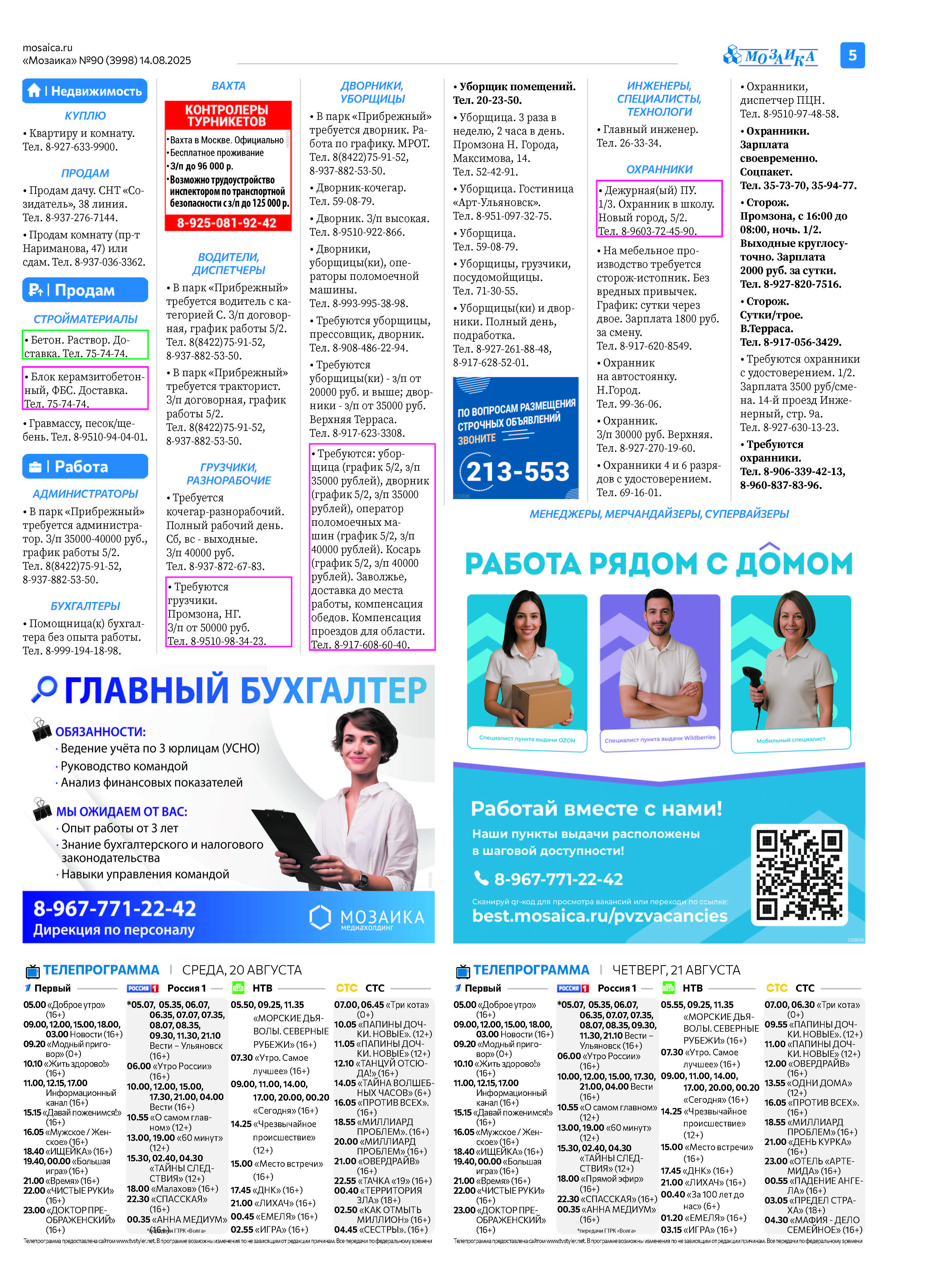 "Мозаика" №90 (3998) от 14 августа 2025 г.