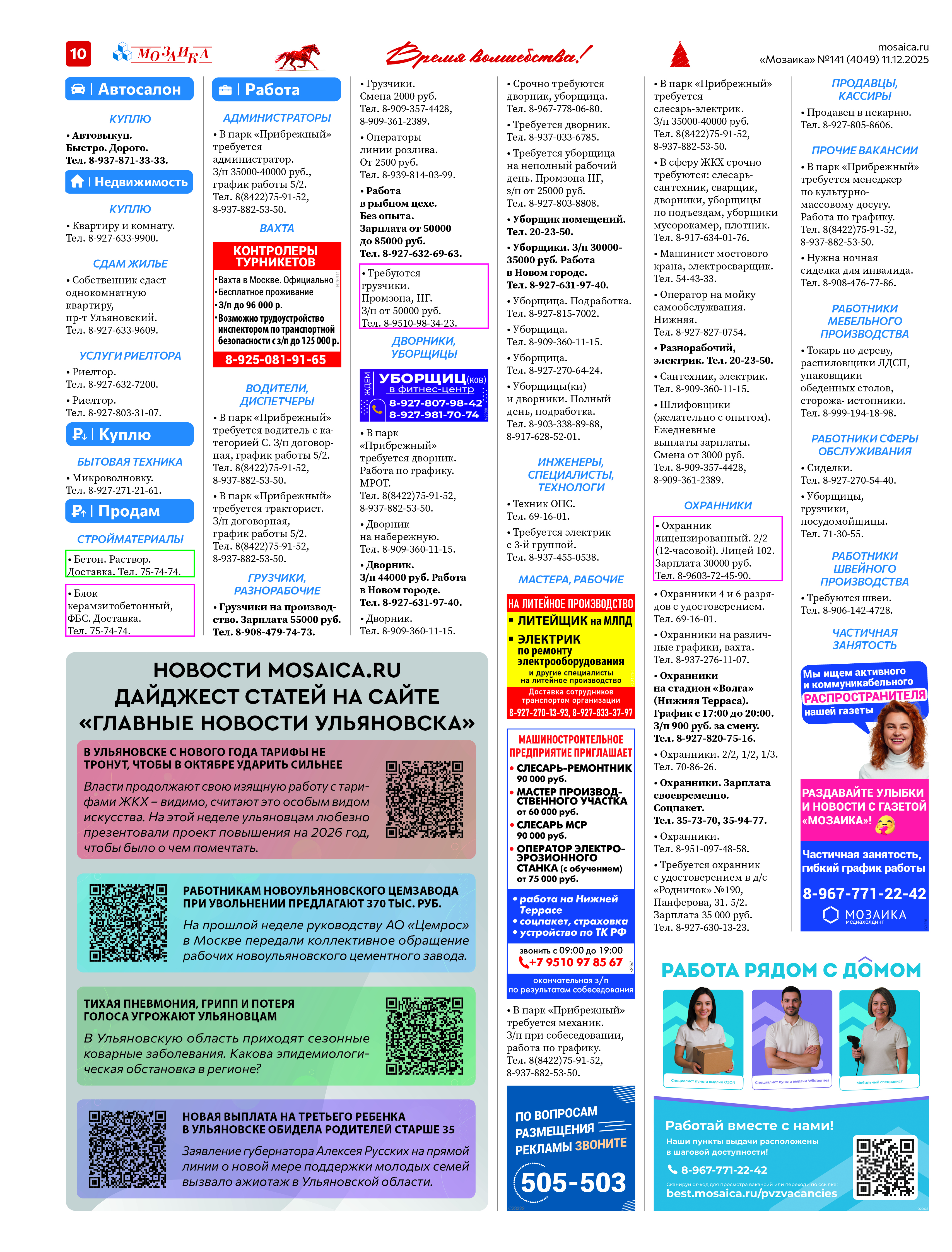 "Мозаика" №141 (4049) от 11 декабря 2025 г.