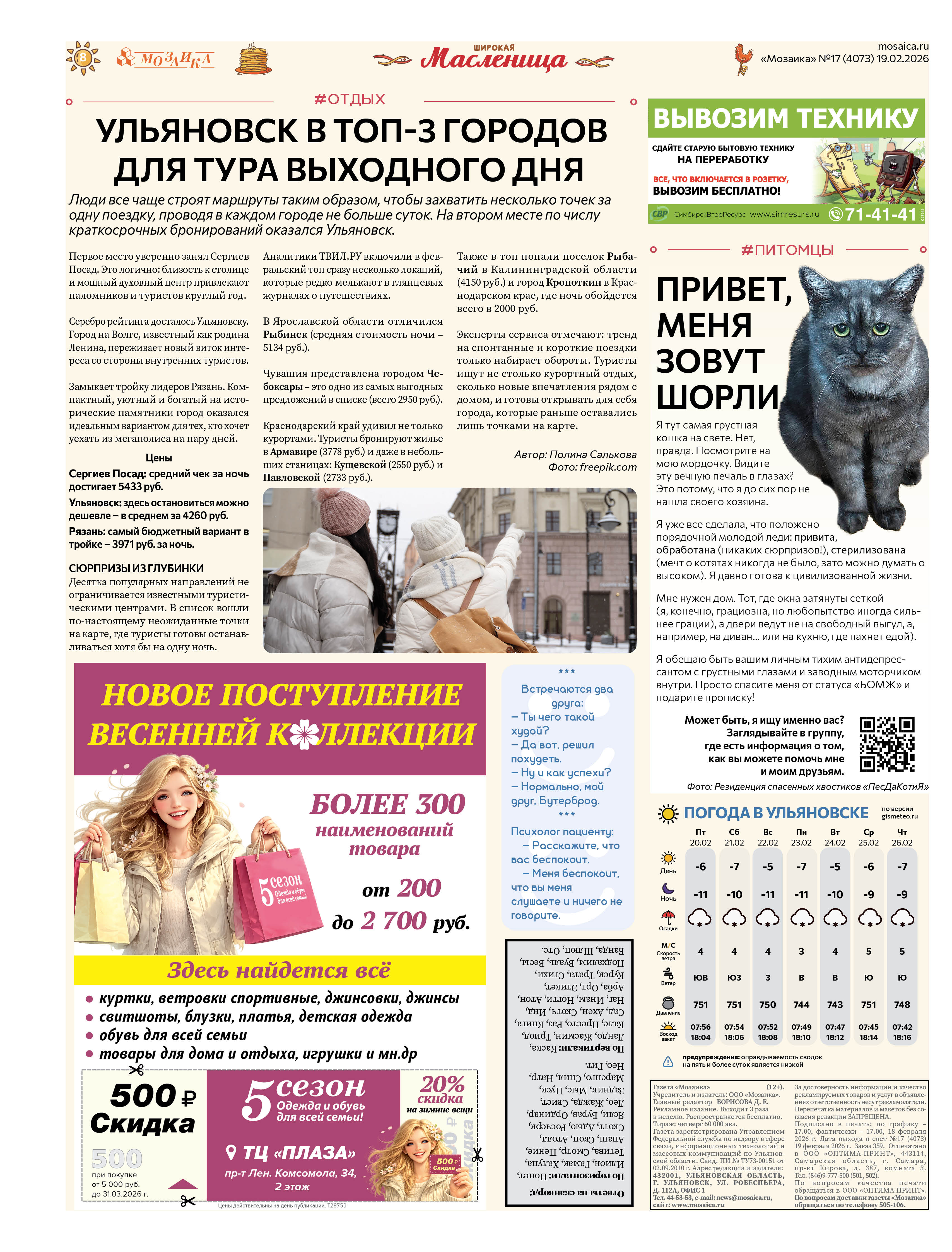 "Мозаика" №17 (4073) от 19 февраля 2026 г.