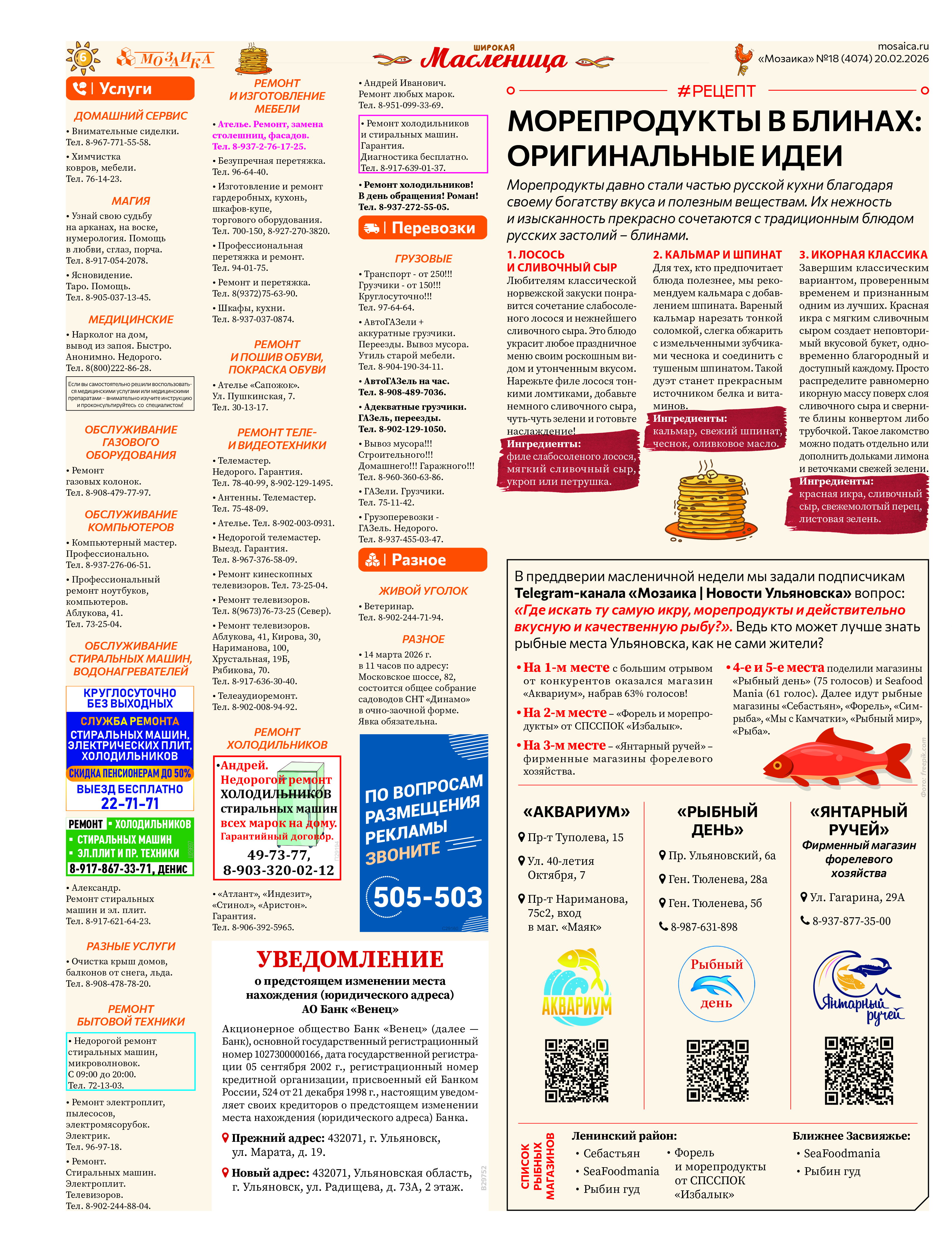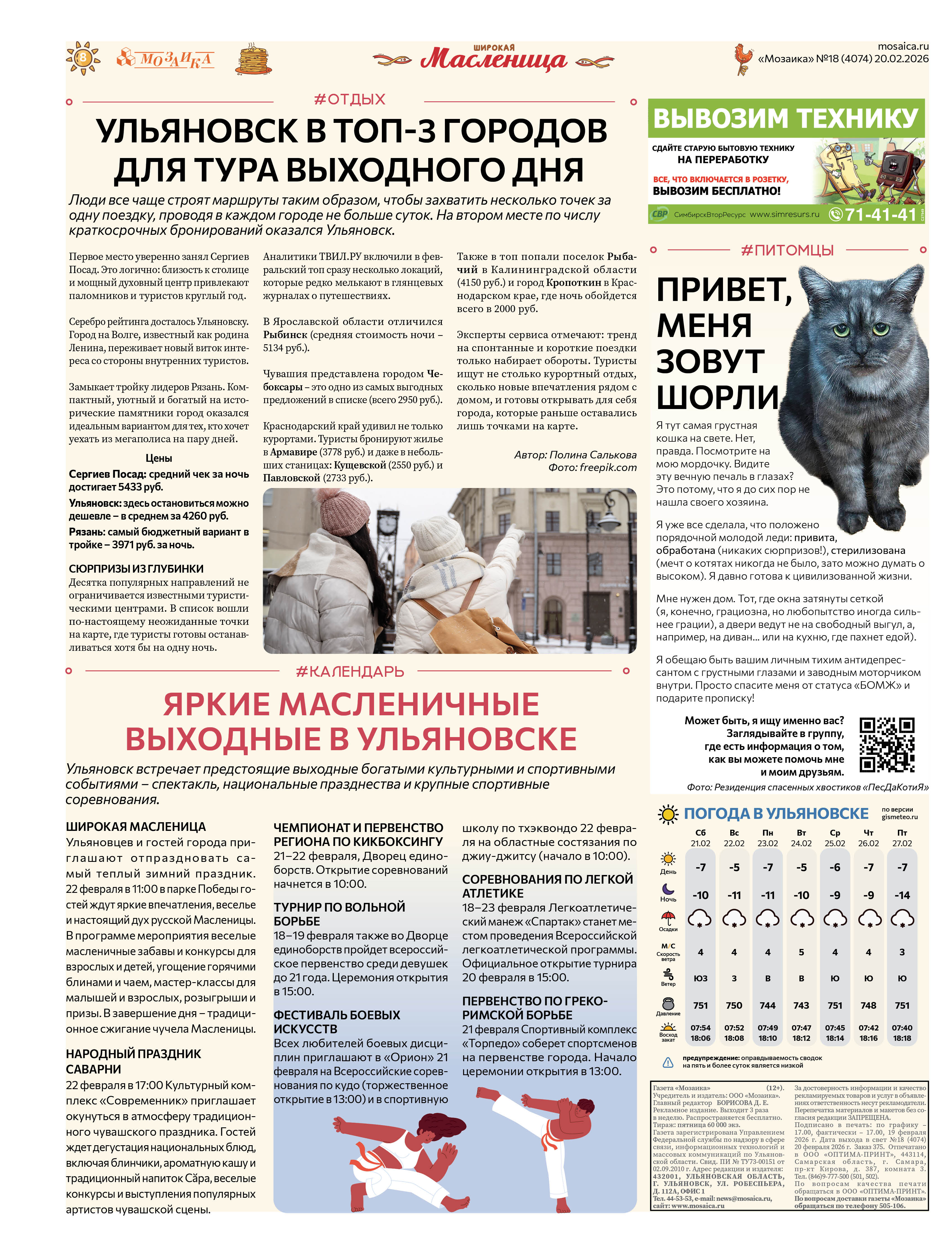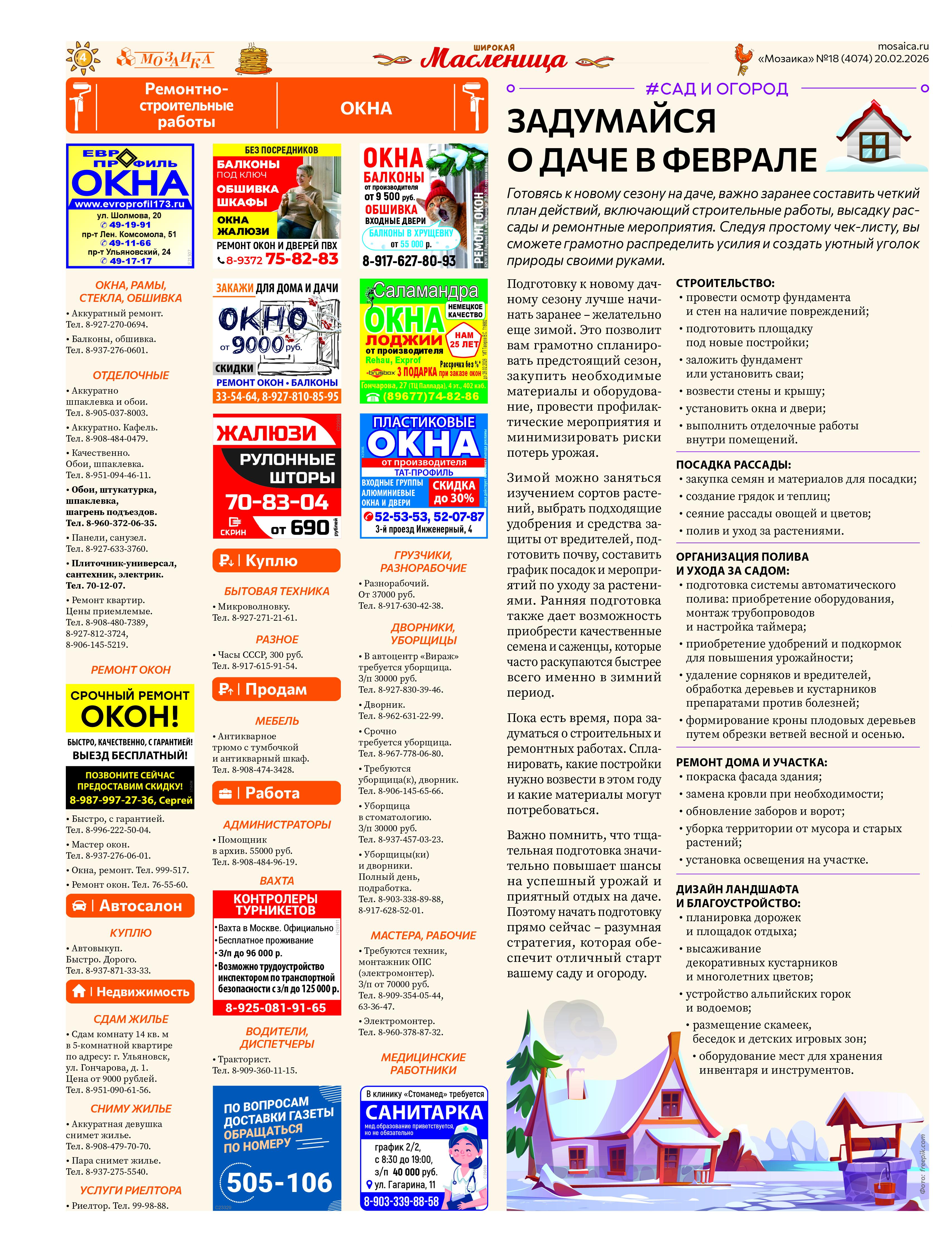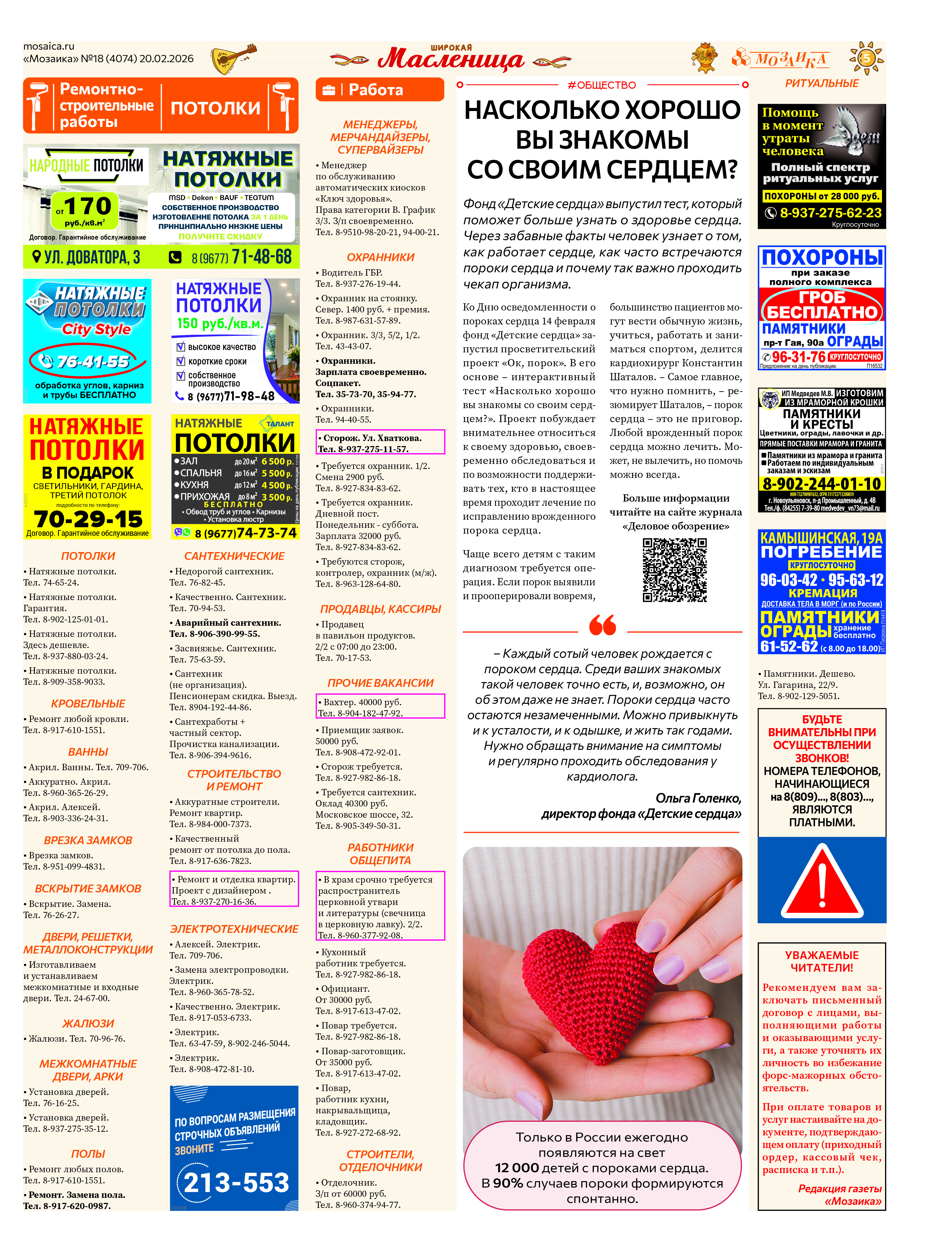 "Мозаика" №18 (4074) от 20 февраля 2026 г.