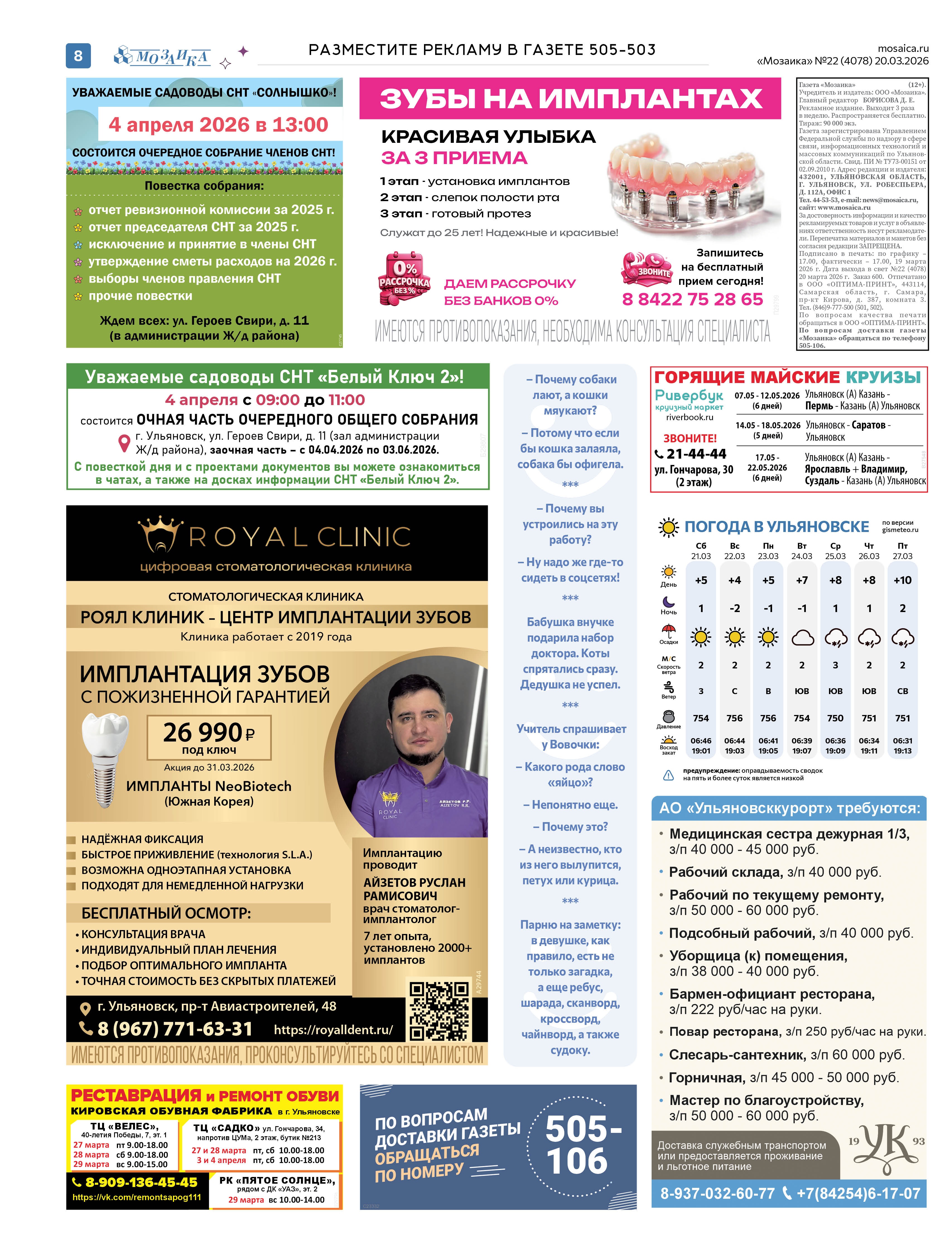 "Мозаика" №22 (4078) от 20 марта 2026 г.