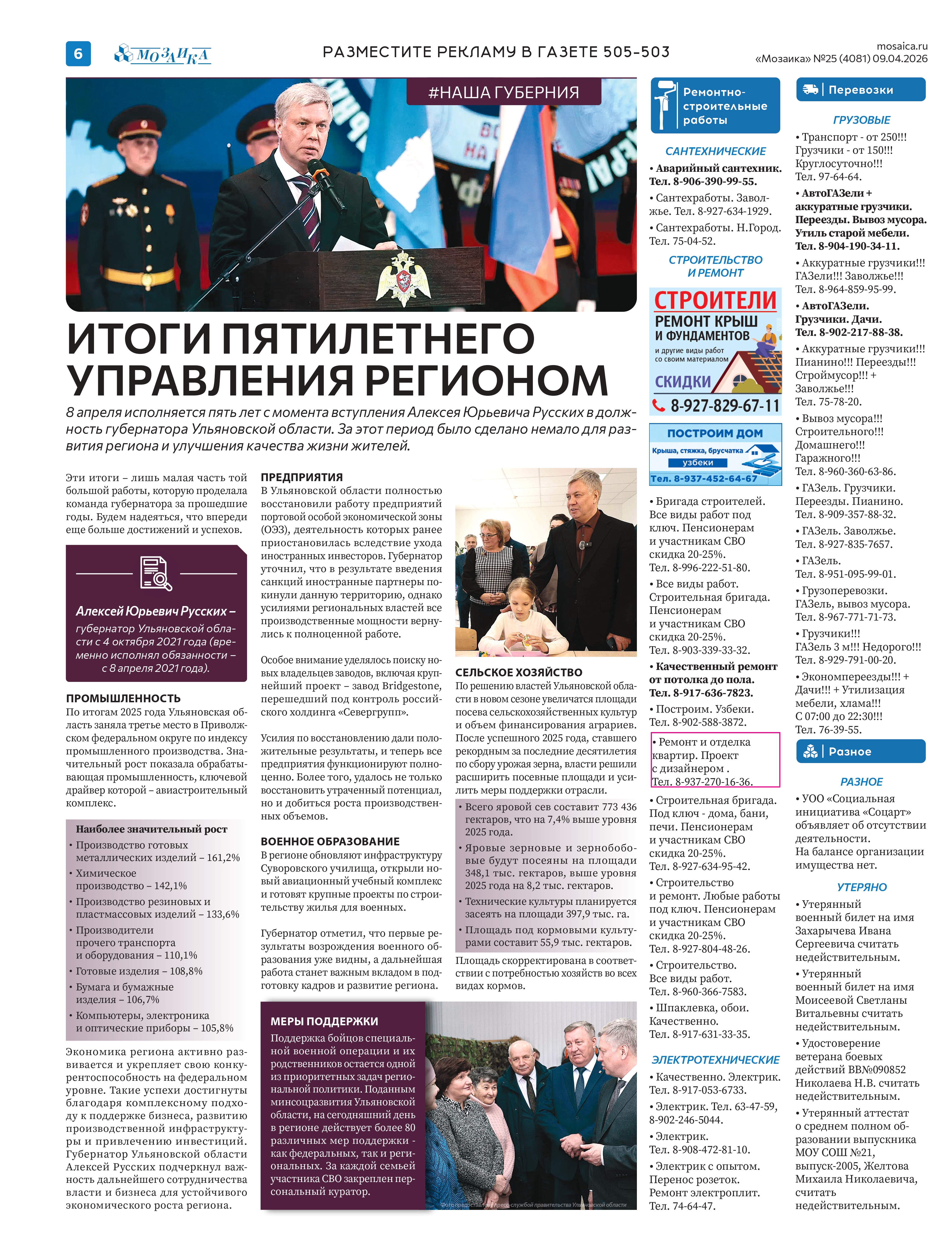 "Мозаика" №25 (4081) от 9 апреля 2026 г.
