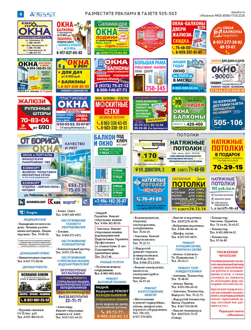 "Мозаика" №28 (4084) от 17 апреля 2026 г.